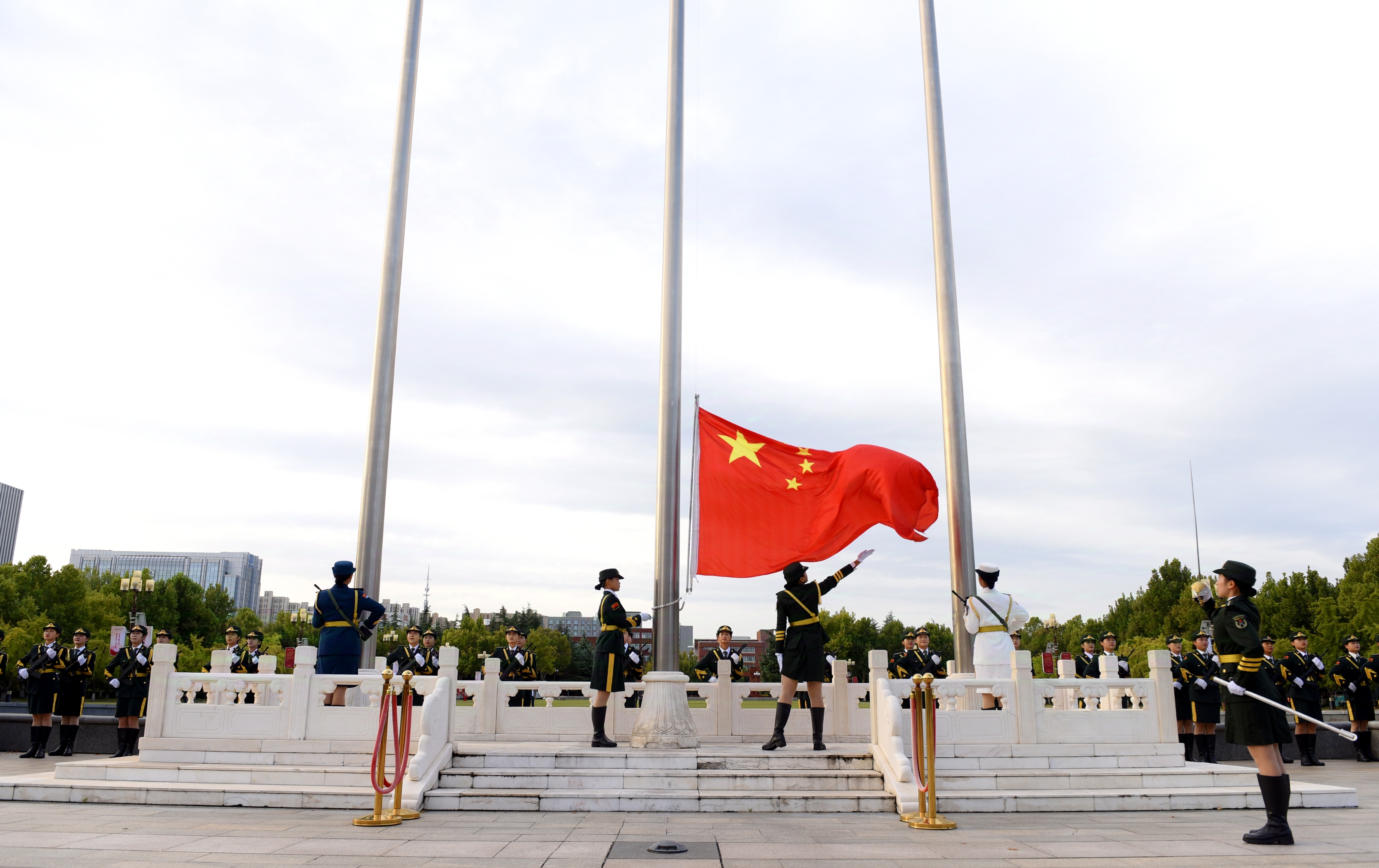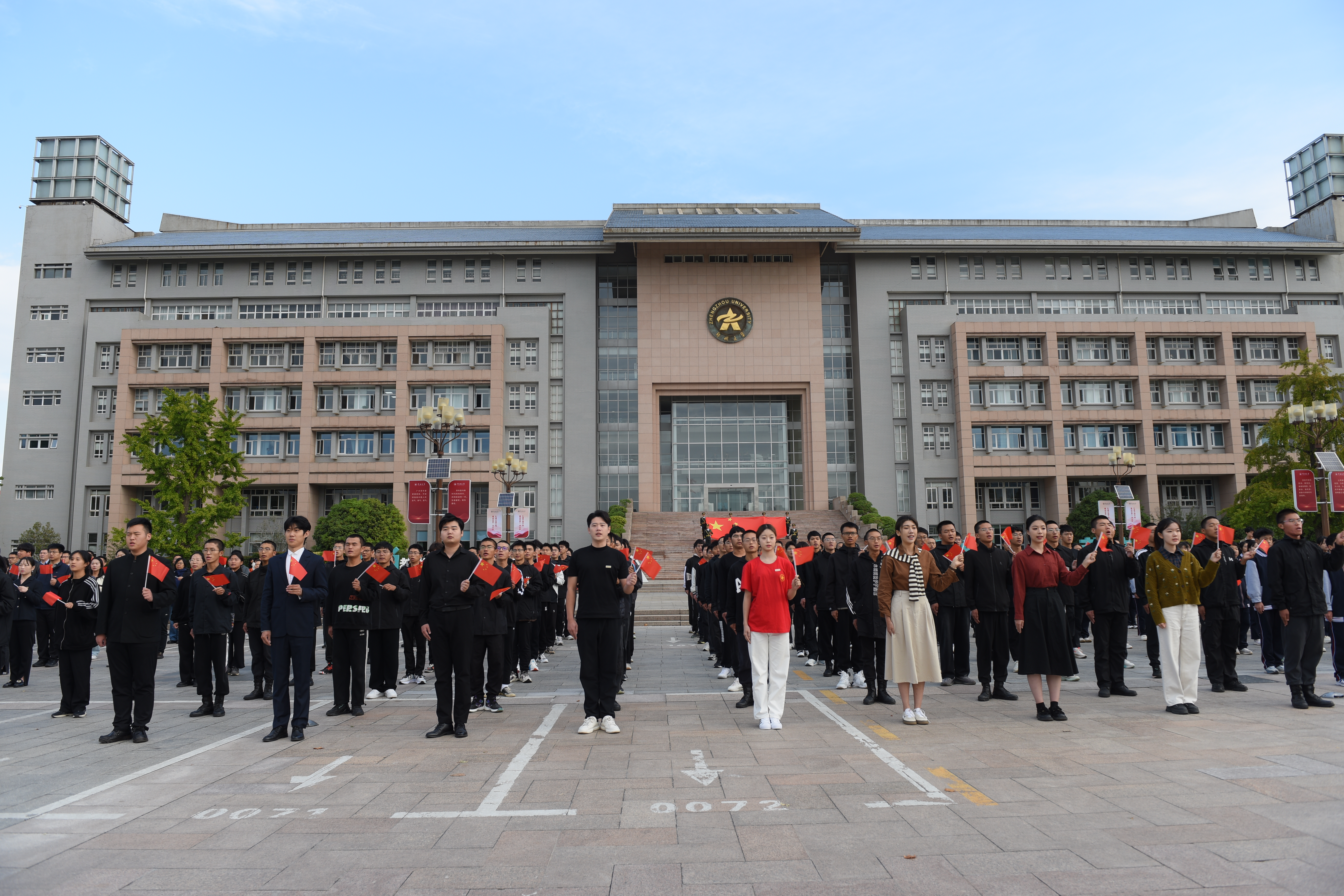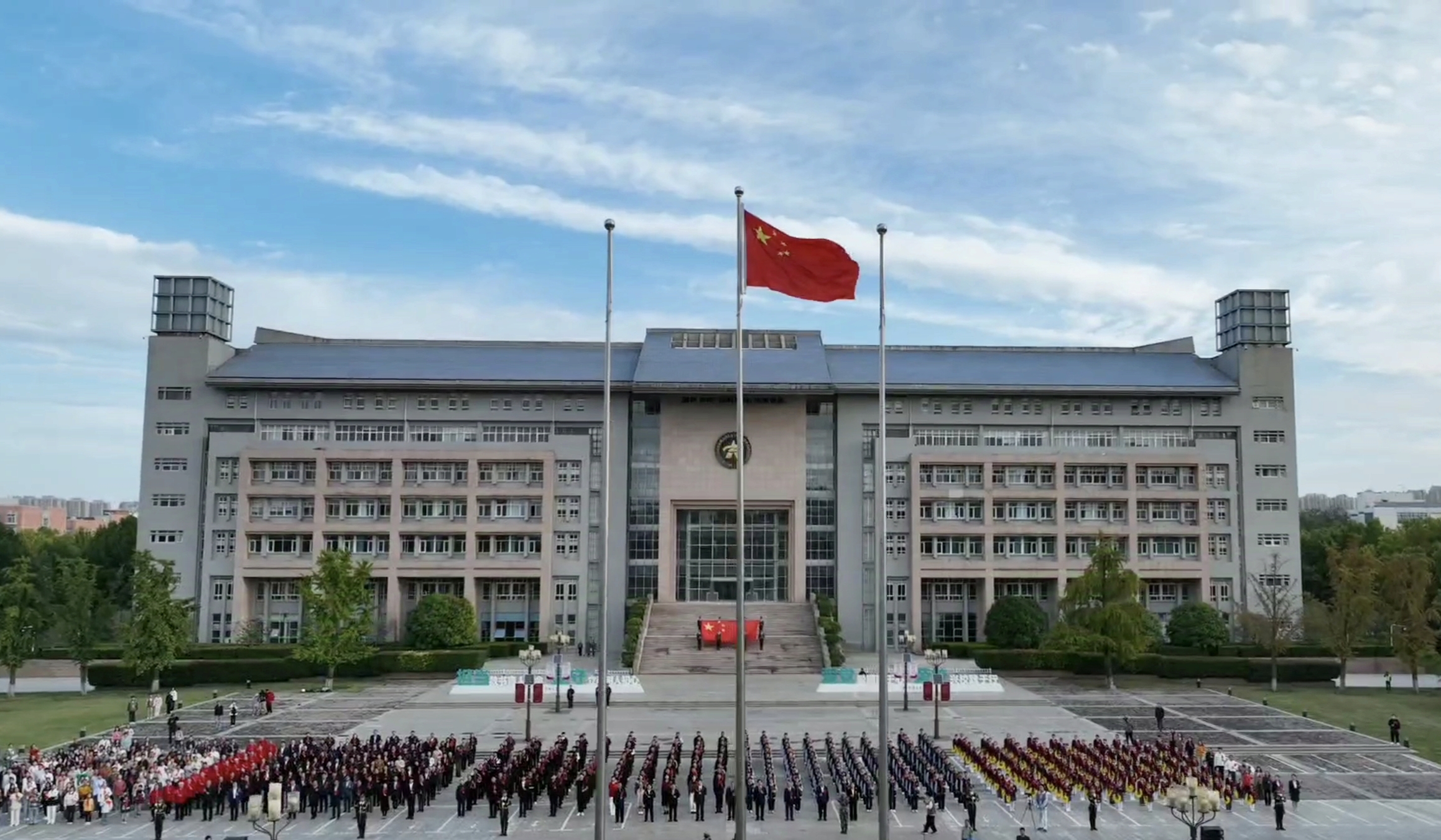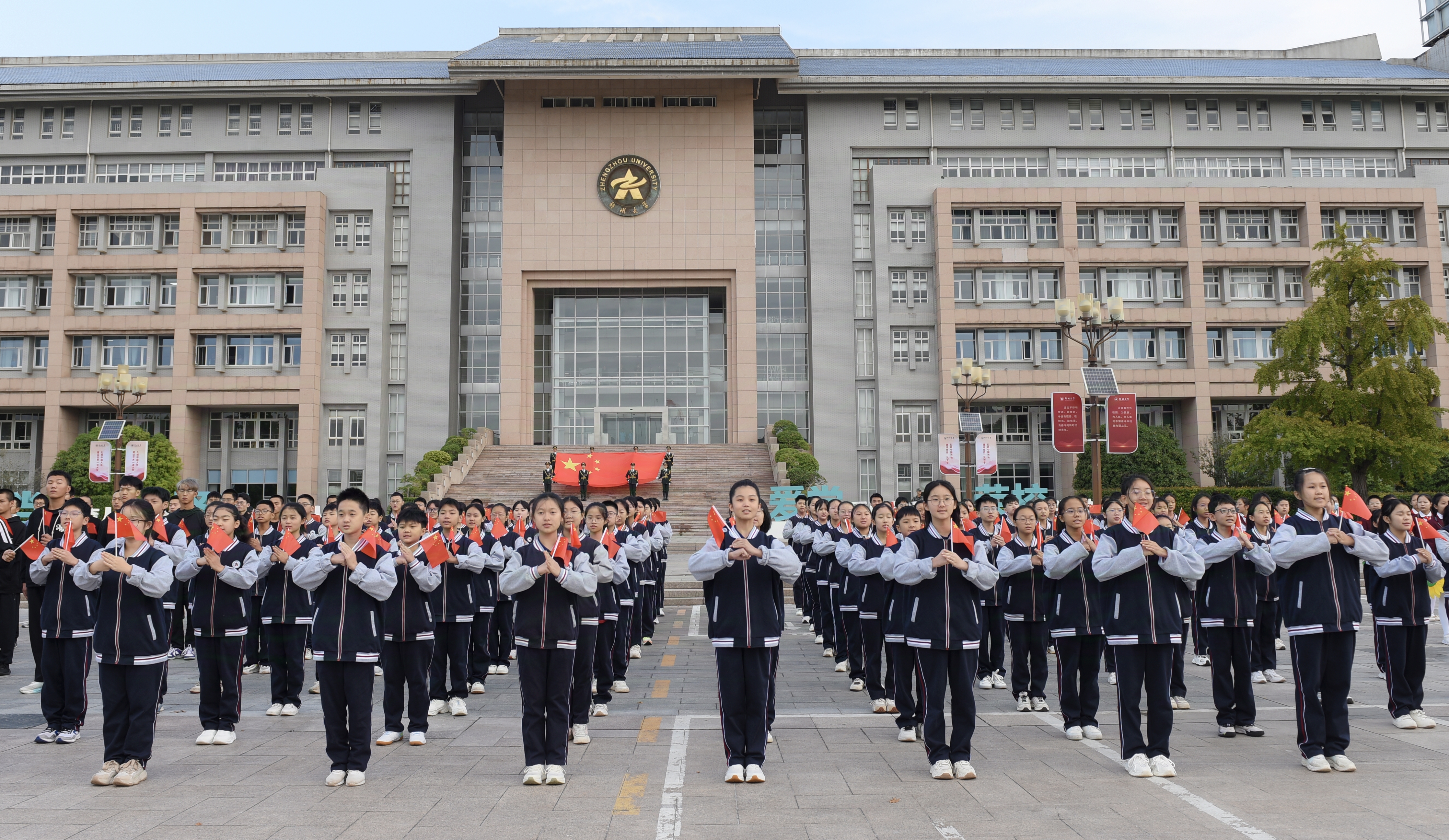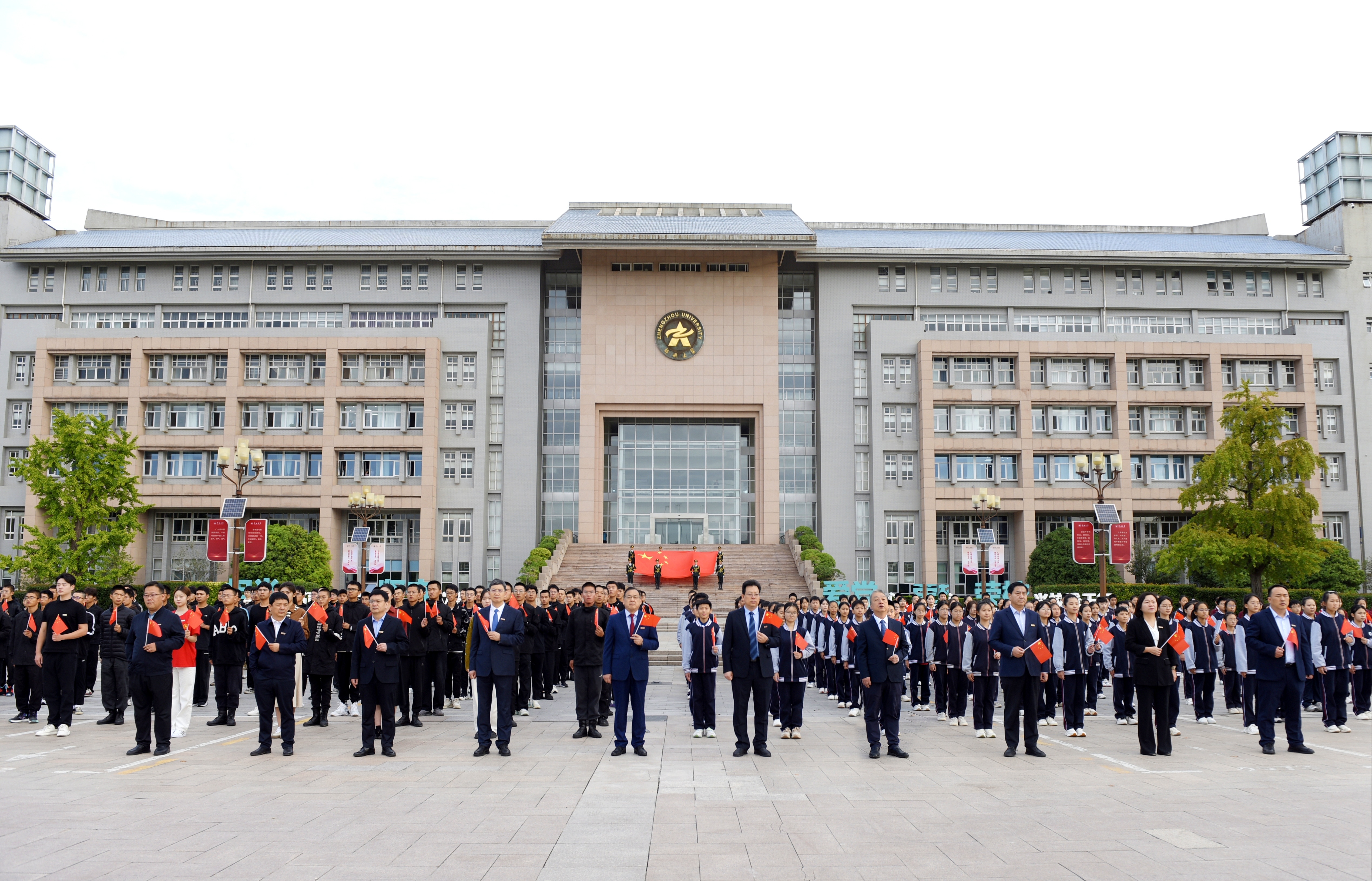 此次迎国庆升国旗主题活动由党委宣传部、党委学生工作部、人民武装部、党委研究生工作部、校团委主办,best365英国在线体育官网河南音乐学院、机关党委、附属中学、离退休职工工作处协同配合,是学校落实立德树人根本任务、构建“五育并举”育人体系的具体举措,是深入推进大中小学思想政治教育一体化建设的有效载体,进一步厚植全校师生爱国情怀,强化奋进一流使命担当,凝聚起助推中部崛起、强国建设的磅礴力量。