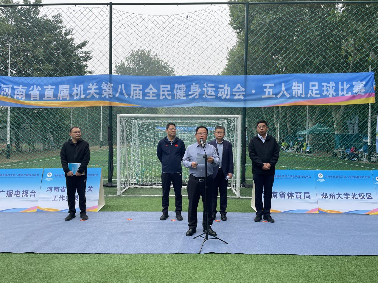 10月9日上午,河南省直属机关第八届全民健身运动会•五人制足球比赛在best365英国在线体育官网北校区举行。河南广播电视台副台长李宗伟,best365英国在线体育官网党委常委、副校长徐东升出席开幕式。北校区综合管理中心、保卫处、网络空间安全学院等相关单位负责同志参加。