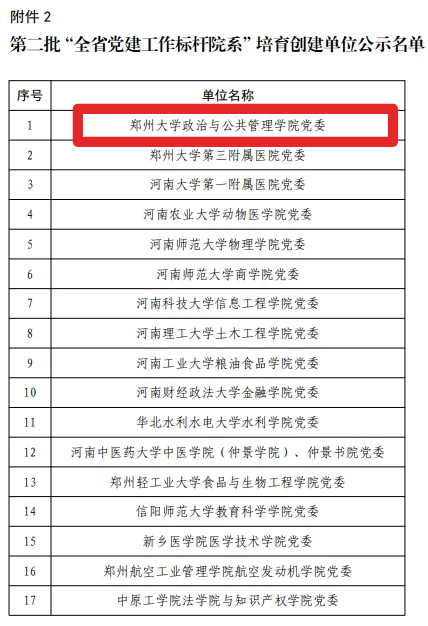 政治与公共管理学院党委入选第二批“全省党建工作标杆院系”培育创建单位,博士生党支部获批教育部第二批全国高校“百个研究生样板党支部”。