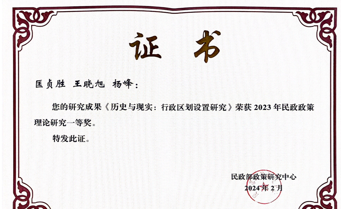 匡贞胜等获得民政部政策研究中心一等奖