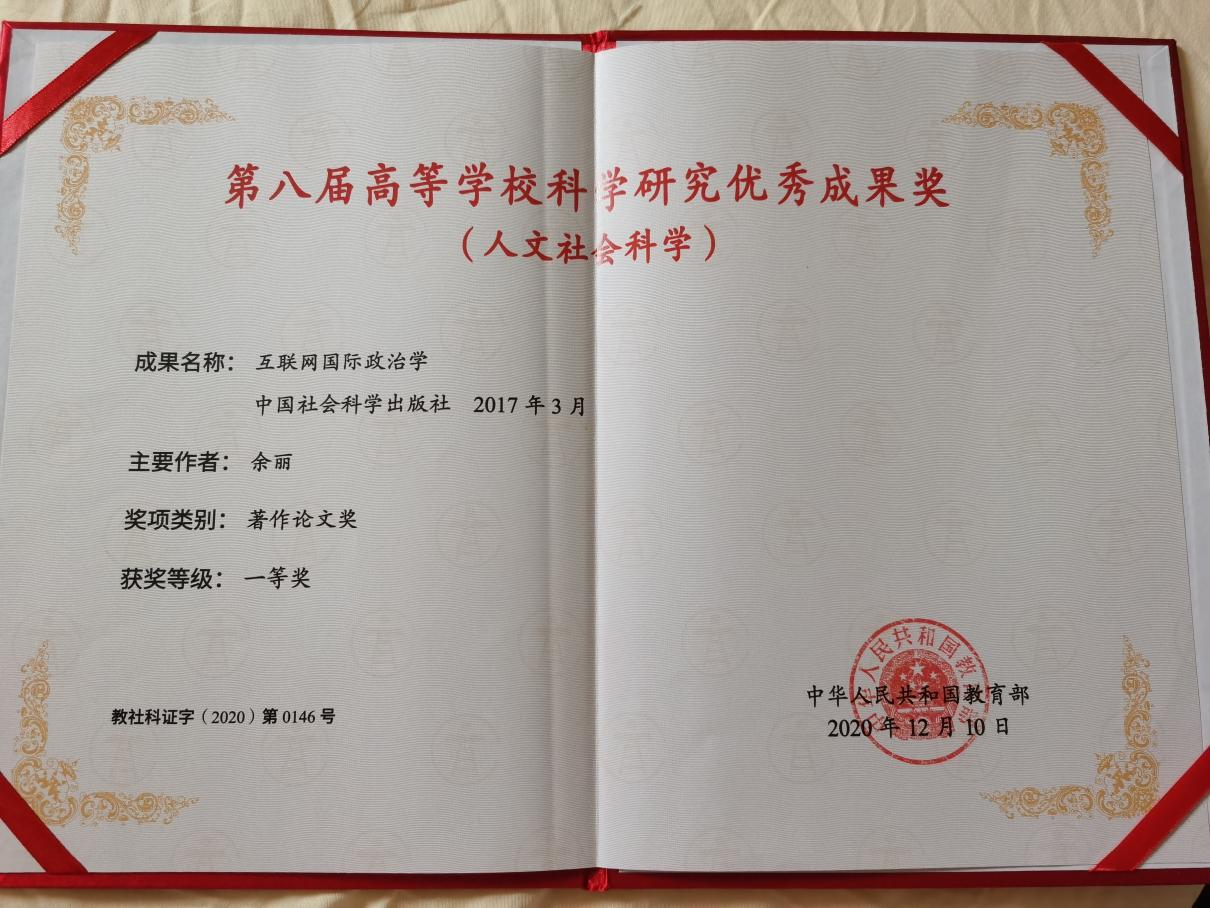 余丽教授获评教育部第八届高等学校科学研究成果奖一等奖