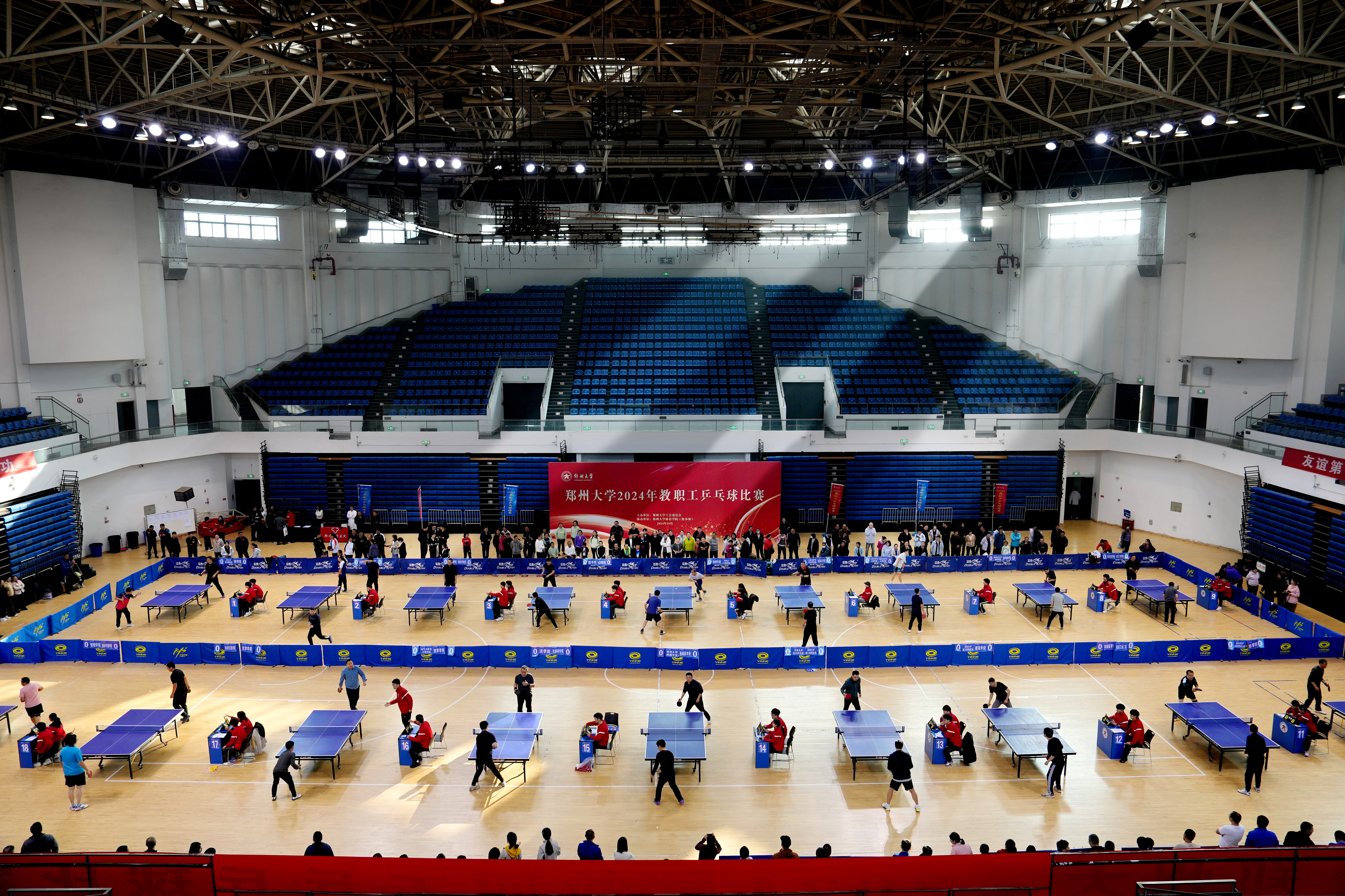 来自全校49个基层单位的458名参赛选手,在两天152场比赛的激烈角逐中,奋勇争先、敢打敢拼。在紧张激烈的比赛中,选手们用精湛的球技和坚韧的竞技精神,充分展现了对乒乓球运动的热爱、对生活的积极态度和奋勇拼搏的精神风貌,以及勇攀高峰的郑大人精神。