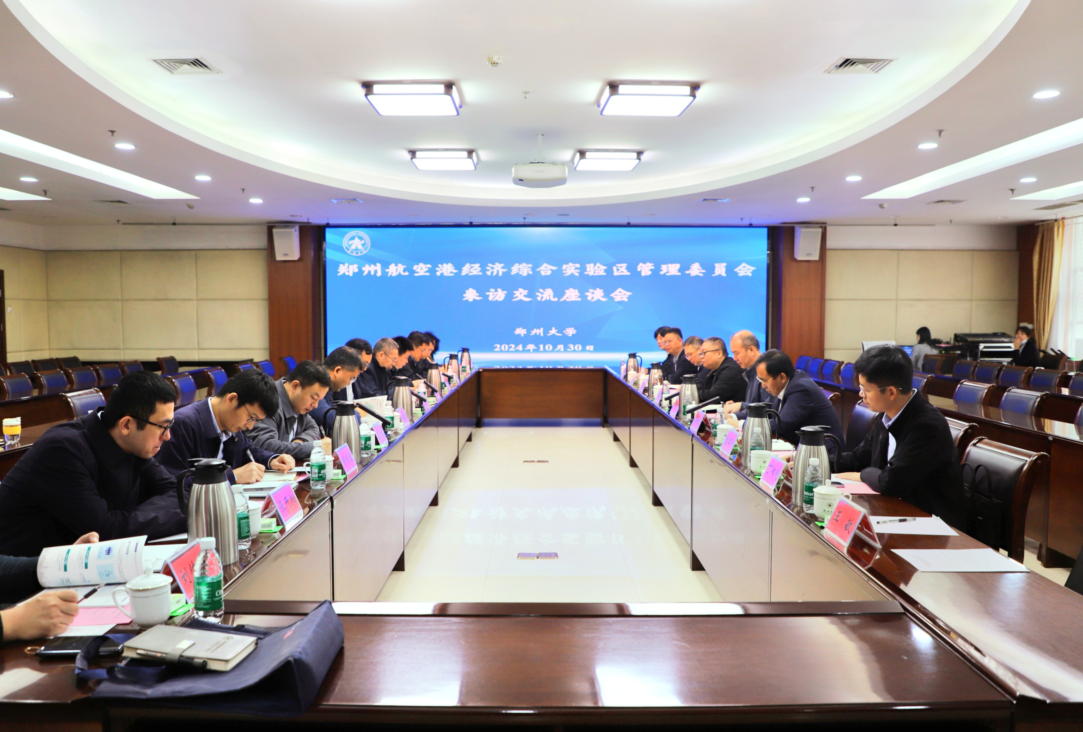 10月30日,郑州航空港经济综合实验区党工委委员、管理委员会副主任张红军一行来访交流。校党委书记别荣海会见张红军一行,就双方加强校地合作进行磋商。学校召开交流座谈会,学术副校长臧双全出席,科学技术研究院、化学学院、材料科学与工程学院、生命科学学院、药学院等单位负责同志参加座谈会。会议由科学技术研究院主要负责同志主持。