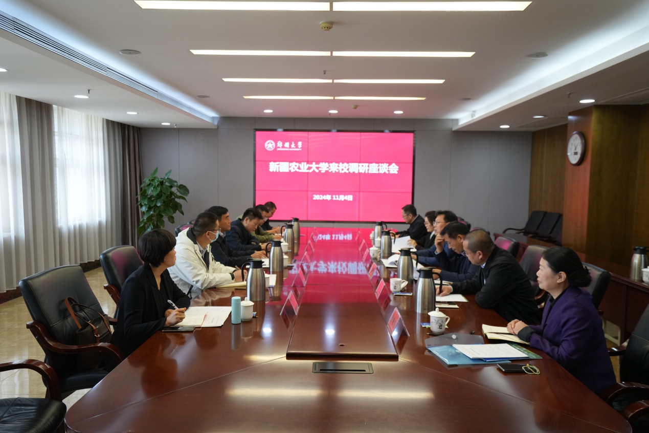 11月4日,新疆农业大学党委常委、副校长刘志怀一行来校调研。学校召开座谈会,校党委副书记王利国出席,党政办公室,体育学院(校本部),校医院,后勤保障中心,信息化办公室、网络管理中心等单位主要负责同志参加座谈。