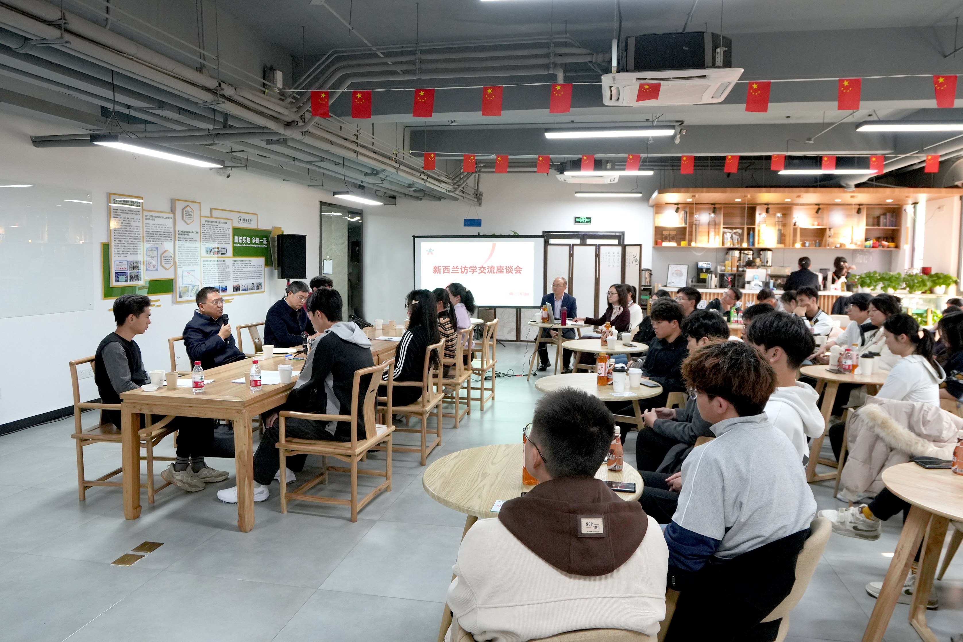 座谈会上,新西兰访学归来的学生代表分别从日常学习、科研探索、跨文化交流等方面分享了访学心得。相关学院及职能部门负责人就人员选派、学生资助、培养方案等进行了探讨。