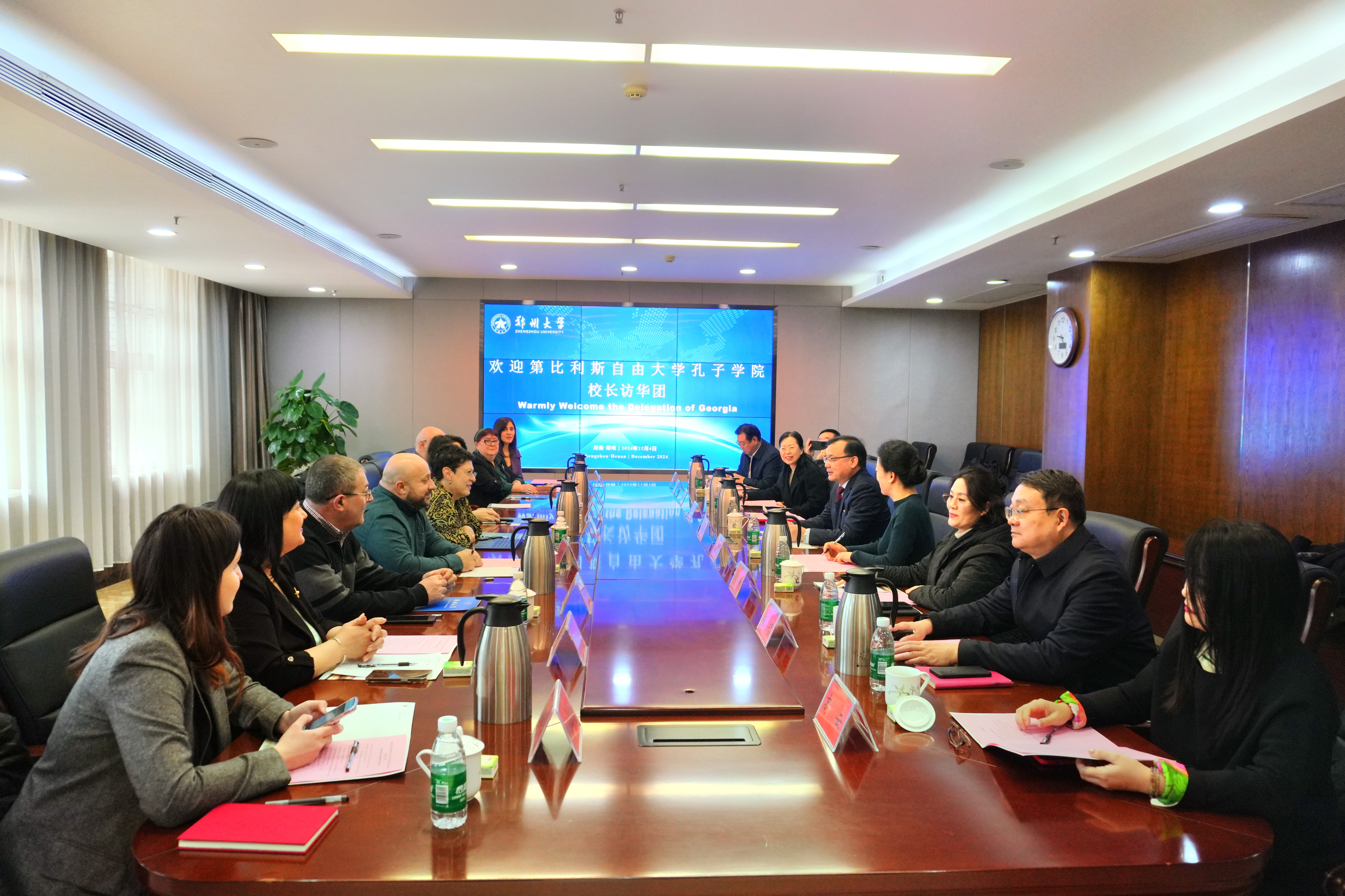 近日,由best365英国在线体育官网主办的“2024年格鲁吉亚第比利斯自由大学孔子学院汉语桥校长访华团”项目欢迎仪式暨座谈会在主校区举行。格鲁吉亚第比利斯自由大学、格鲁吉亚教育部中小学国民教育司、第比利斯自由学校(中学)等单位的10名校长、官员,best365英国在线体育官网党委副书记、工会主席韩国河出席座谈会。文学院、体育学院、书法学院、国际教育学院、历史学院、美术学院、best365英国在线体育官网附属中学以及国际交流与合作处负责同志参加座谈会。