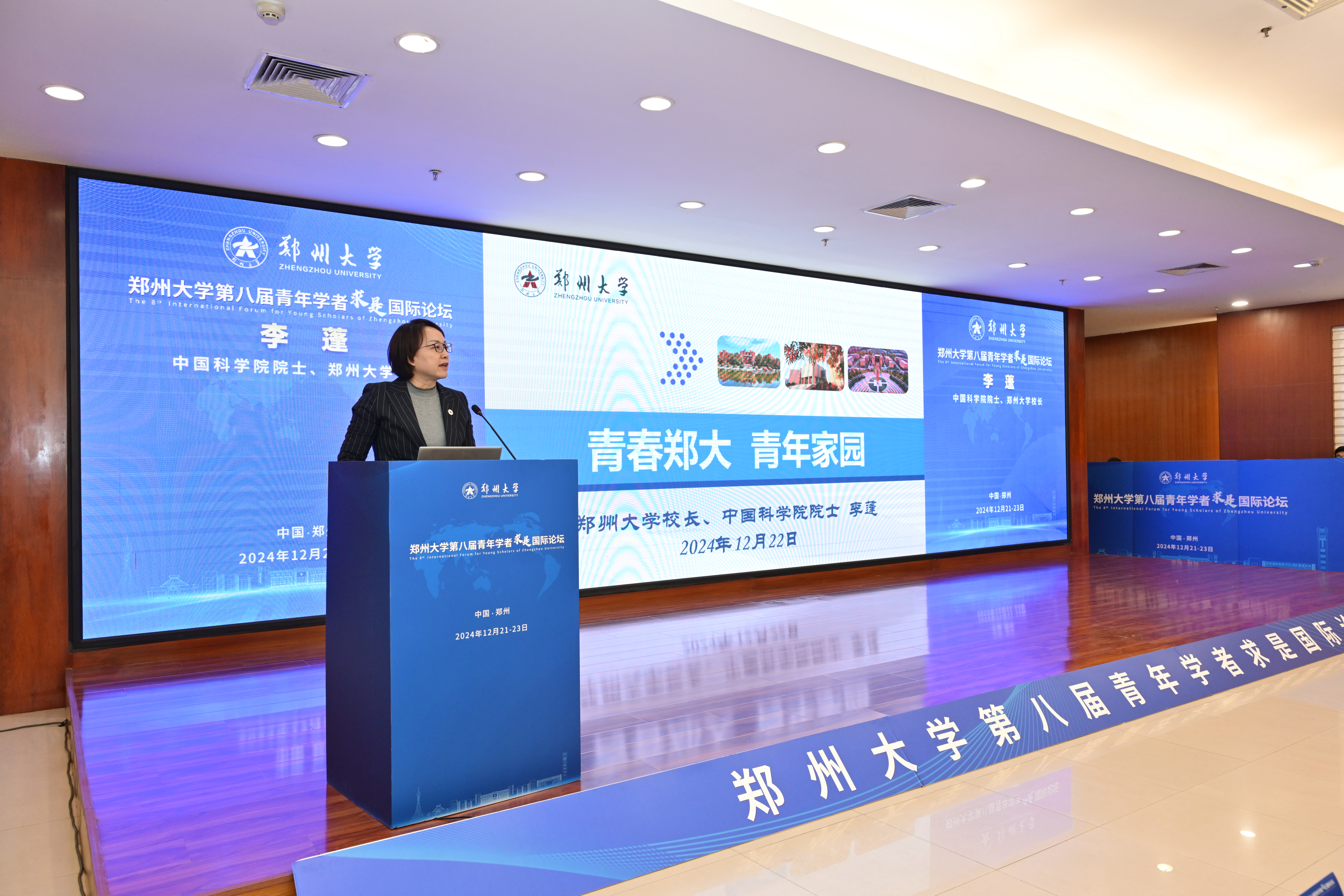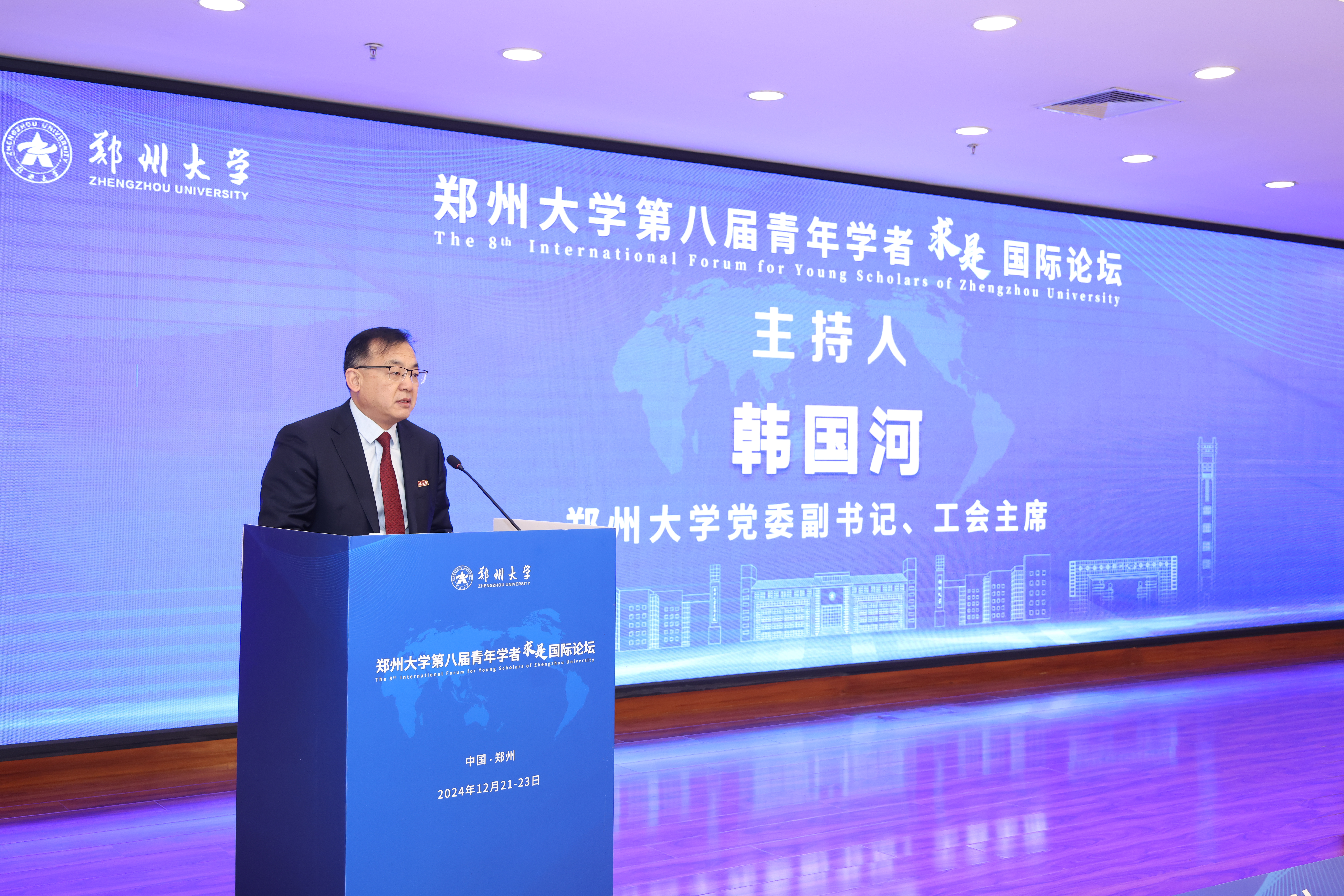 22日,主论坛在主校区举行。来自哈佛大学、麻省理工学院、剑桥大学、牛津大学等40个国家和地区著名高校及科研院所的1083位青年学者报名参会,其中200余位青年学者受邀到校参会。河南省委组织部、河南省人力资源和社会保障厅、河南省教育厅、郑州市委组织部、河南省高层次人才服务中心、河南省人才集团、郑州高新区管委会等单位相关领导出席论坛。主论坛由校党委副书记、工会主席韩国河主持。