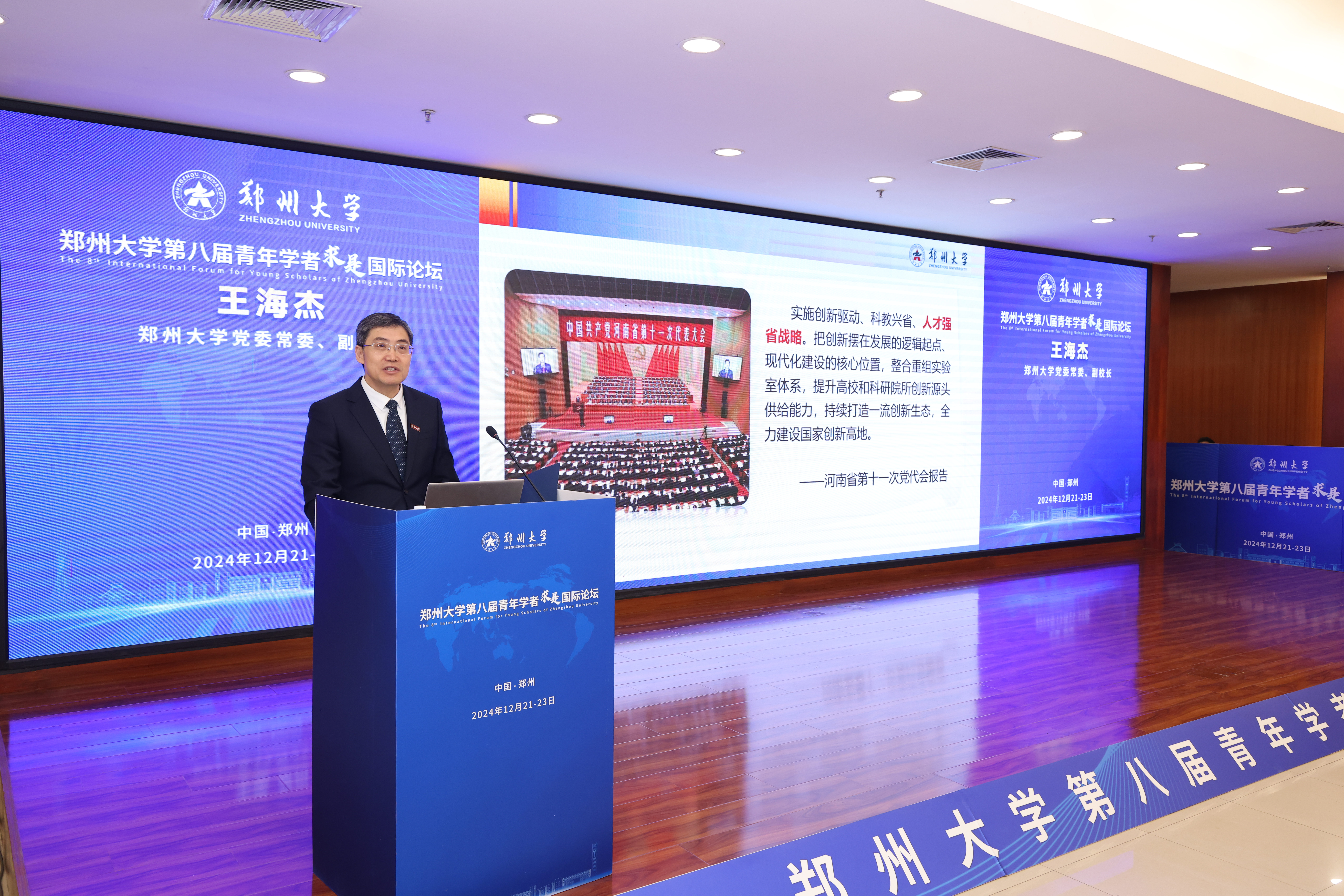 校党委常委、副校长王海杰全面介绍了best365英国在线体育官网积极开放的引才政策、系统精准的育才举措、温馨包容的留才环境和务实有效的用才改革,并着重讲解了学校“双轨制”人才体系、人才高地建设支持计划、“双百团队”培育计划、学科特聘教授岗位待遇等人事人才政策,展示了学校广阔的发展平台、优越的治学环境和优厚的薪酬待遇,并向海内外青年才俊们发出“郑当其时,大有可为”的诚挚邀请。