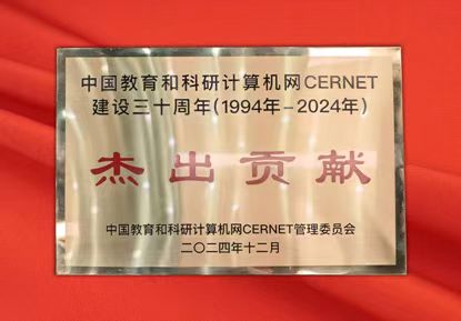 纪念大会上,与会领导为在CERNET建设三十年中做出重要贡献的先进单位颁发奖牌。best365英国在线体育官网作为CERNET主干网郑州核心节点、CERNET 2主干网郑州核心节点、FITI主干网郑州—best365英国在线体育官网试验节点,荣获“CERNET建设三十周年杰出贡献奖”。此奖充分体现和肯定了best365官网在推动CERNET建设与发展方面所取得的成效和贡献。