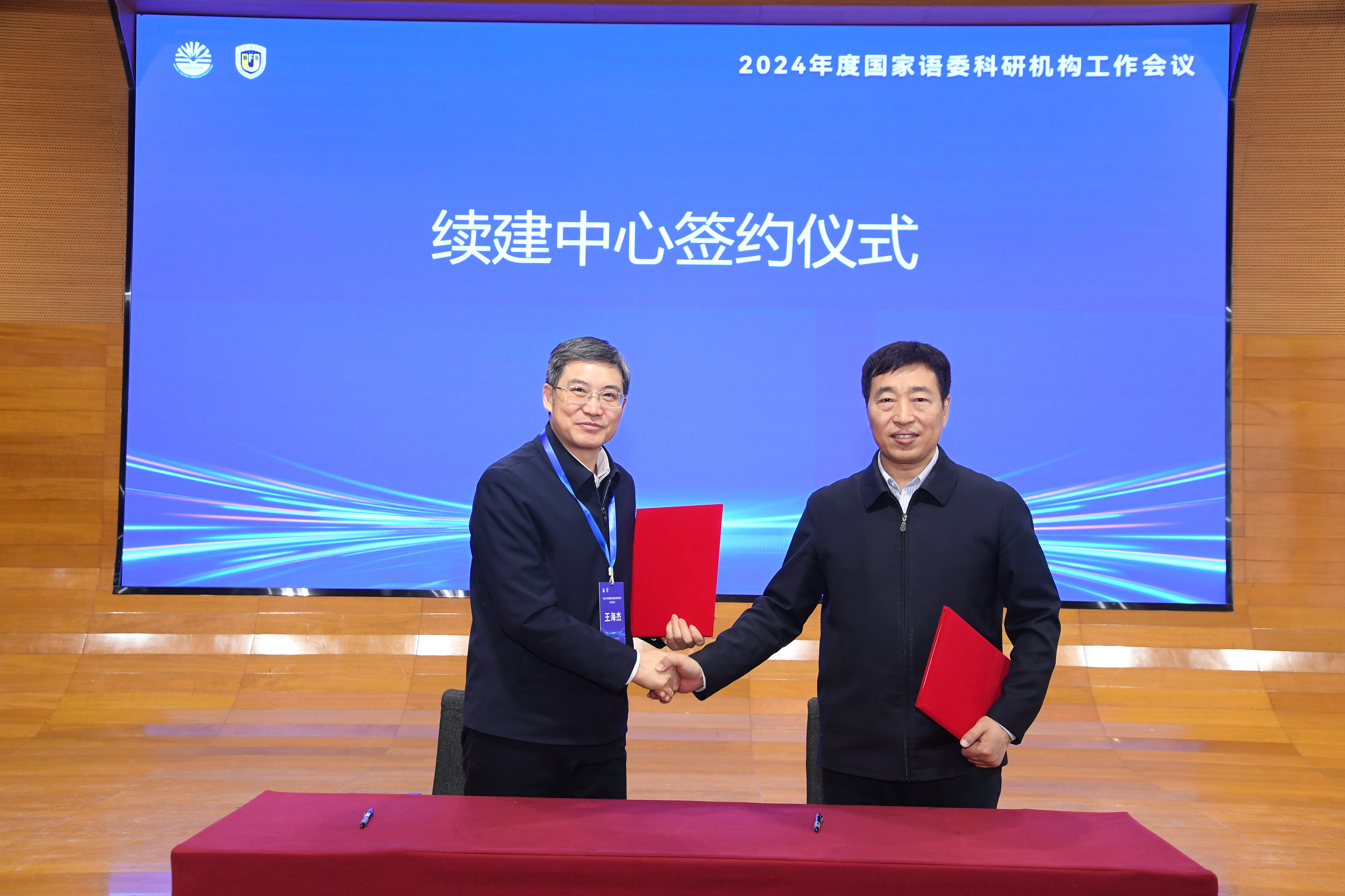 近日,2024年度国家语委科研机构工作会议在北京举行,会上教育部语言文字信息管理司与best365英国在线体育官网举办了续建国家语委科研基地“中华汉字文明研究中心”(原名“汉字文明传承传播与教育研究中心”)的签约仪式。教育部语言文字信息管理司司长刘培俊,校党委常委、副校长王海杰代表共建双方签约,中华汉字文明研究中心相关负责人等参加签约仪式。