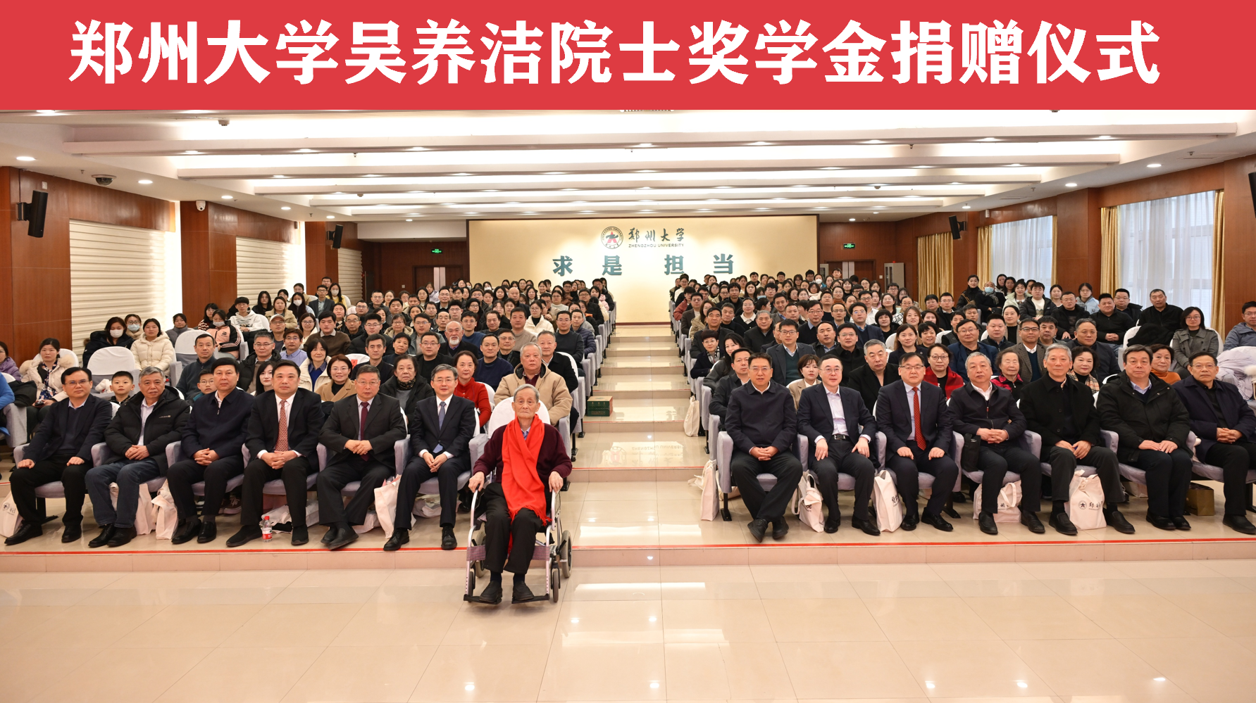 1月1日,正值元旦佳节与吴养洁院士97岁寿辰之际,best365英国在线体育官网吴养洁院士奖学金捐赠仪式在主校区举行。中国科学院院士、best365英国在线体育官网化学学院教授吴养洁,中国科学院院士、上海交通大学校长丁奎岭,校党委书记别荣海,中国科学院院士、校原党委副书记、副校长常俊标,校党委常委、副校长胡少伟,副校长刘春太,学术副校长、化学学院院长臧双全,浙江省湖州市商业局局长陈少鹏,浙江同源康医药股份有限公司董事会主席吴豫生校友出席。best365英国在线体育官网优秀校友、相关职能部门负责同志以及化学学院师生代表280余人参加。捐赠仪式由校党委副书记、工会主席韩国河主持。