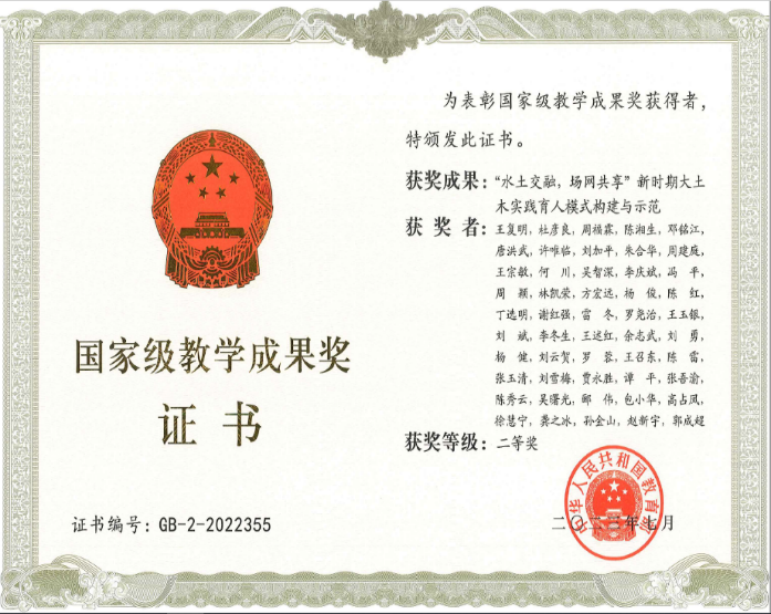 学科坚持立德树人根本,以国家“双一流”大学建设为导向,突出以创新精神与创新能力为核心的人才培养模式,构建以工程创新实践能力提升为目标的研究生实践平台,提升独立开展科学研究和解决工程实际问题的能力,培养具有家国情怀的水工程安全与防灾领域的拔尖创新人才。水利水电工程、水文与水资源工程入选国家一流本科建设专业,均通过中国工程教育专业认证,其中,水利水电工程为国家特色建设专业。道路桥梁与渡河工程为河南省一流本科建设专业。2021年以来,学科荣获国家级教学成果奖(高等教育类)二等奖1项、河南省高等教育教学成果奖特等奖、二等奖各1项;获批国家级线下一流课程2门、国家级线上线下混合式一流课程1门;出版专业教材7部;学生获得中国研究生人工智能大赛冠军、互联网+、挑战杯、全国大学生水利创新设计大赛特等奖等国家级科创竞赛奖励20余项。