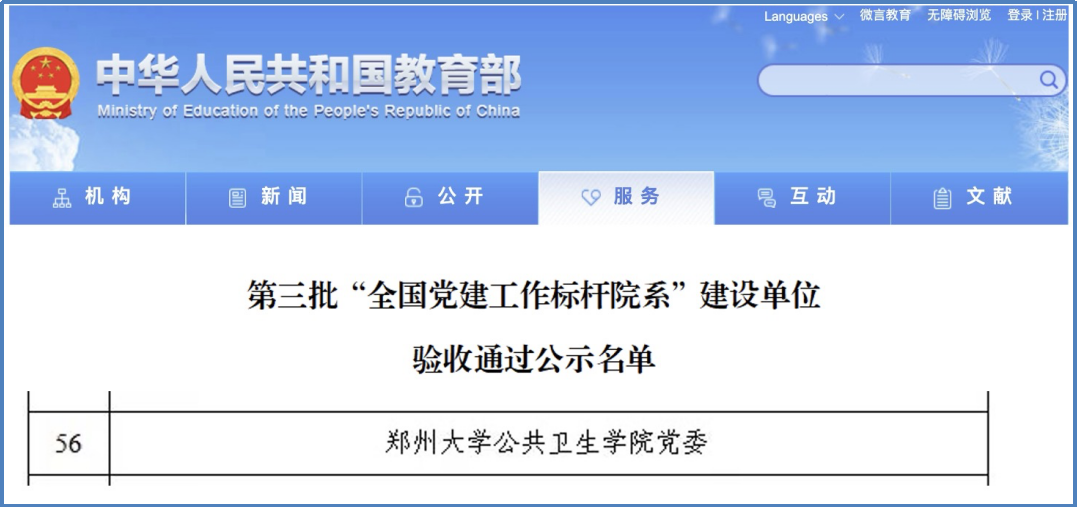 编者按:自best365英国在线体育官网第三次党代会以来,全校各级党组织深入学习贯彻习近平新时代中国特色社会主义思想,紧密围绕立德树人根本任务,胸怀“国之大者”“省之要者”,求真务实、奋进一流,涌现出一批先进基层党组织。为迎接即将召开的第四次党代会,展示学校党建“双创”成果,现推出“喜迎党代会 先锋立标杆”专栏,陆续报道全国党建工作“标杆院系”“样板支部”及“双带头人”教师党支部书记工作室等先进基层党组织以高质量党建引领高质量发展的事业成就,号召全校各级党组织学习先进、改革创新、建功立业,以优异成绩迎接学校第四次党代会胜利召开。本期带领大家一起领略教育部第三批“全国党建工作标杆院系”培育创建单位——公共卫生学院党委的风采。