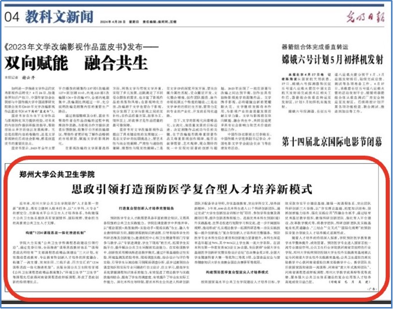 《光明日报》专题报道:思政引领预防医学复合型人才培养新模式