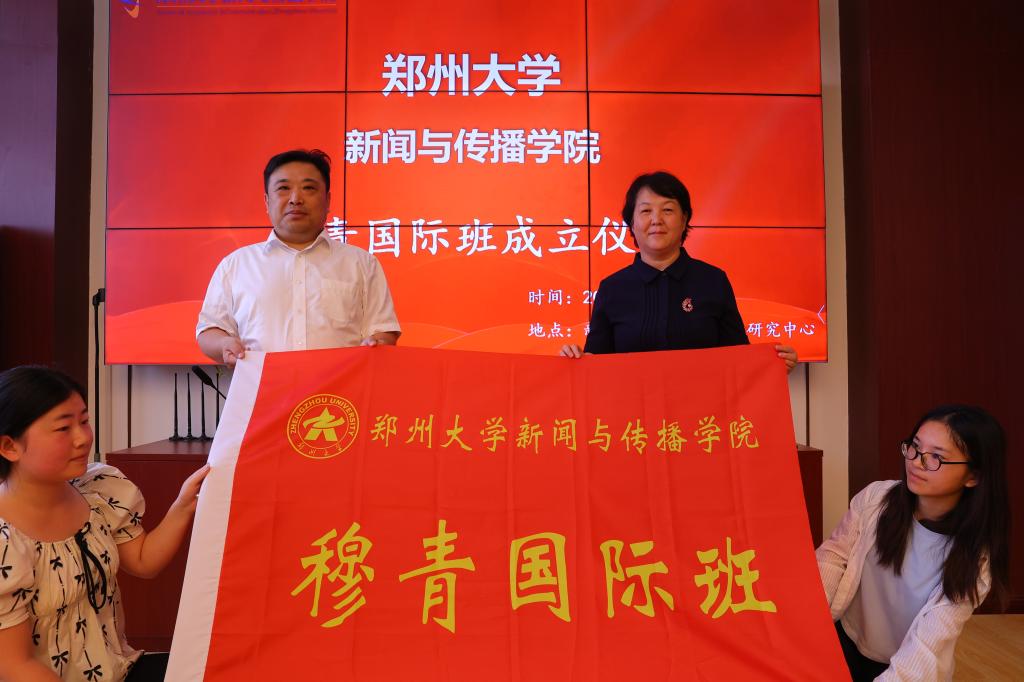 校党委常委、副校长胡少伟教授出席穆青国际班成立仪式并授班旗