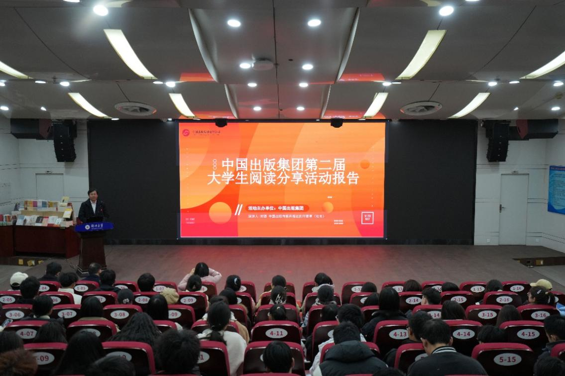 宋强简要回顾了中国出版集团首届大学生阅读分享活动举办情况,介绍了第二届大学生阅读分享活动的基本概况和参与方式,同时结合阅读和创作经验分享了写好书评的经验方法,精心推荐了一系列涵盖历史、文学、哲学、经济学等多个领域的优质图书。他呼吁青年学生要以“中国好书”和优秀出版物为载体,深入阅读经典,创作出导向正确、主题鲜明的文字作品,传递阅读的力量,在阅读中拓宽文化视野、提升思想深度。在互动环节,宋强与在场学生进行深入沟通交流,赠送经典图书。现场氛围热烈、书香满溢。