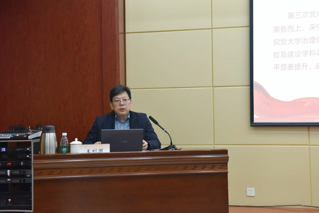 报告会上,王利国从合校以来主要工作和基本经验、全面把握一流大学建设新形势、奋力谱写一流大学建设新篇章、全面加强党的领导和党的建设等四个方面,全面深入解读了第四次党代会精神。他指出,此次党代会是在学校建设中国特色世界一流大学新征程中召开的一次十分重要的会议,具有承前启后、继往开来的深远意义。党代会报告总结了合校特别是第三次党代会以来的成绩经验,凝练了best365英国在线体育官网精神,分析了形势机遇挑战,明确了高水平研究型大学办学定位,谋划了今后五年乃至更长时期发展的总体思路和主要任务,是指导学校未来一个时期发展的纲领性文件,对于进一步加强党的全面领导,抢抓时代重大机遇,融入支撑国家战略,全面深化改革创新,加快提升内涵水平,奋力谱写中国特色世界一流大学建设新篇章,具有重要的指导意义。他号召全体师生要进一步提高政治站位,深刻认识学习贯彻党代会精神的政治意义、战略意义和实践意义,将思想和行动统一到党代会的决策部署上来,把力量凝聚到党代会确定的各项任务上来,为推进学校世界一流大学建设开创新局面。