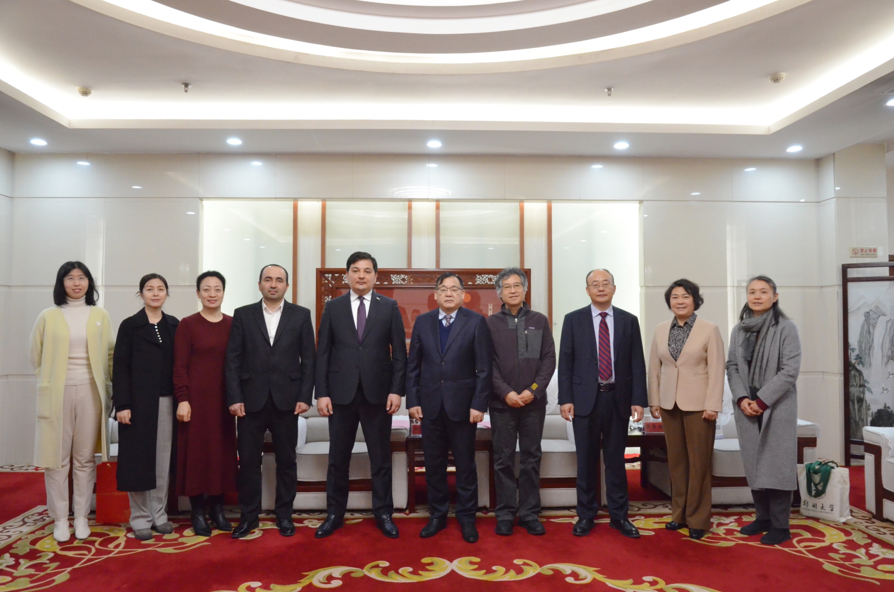 韩国河对费尔干纳国立大学代表团的到访表示热烈欢迎,并简要介绍了学校基本情况和办学特色。他表示,中乌两国有悠久的文明交流史,在古丝绸之路商贸与文化交流中,双方往来频繁、互动密切。河南作为中原文明的核心区域,与费尔干纳地区在历史和文化上有着独特的联系。他表示,在“一带一路”倡议的持续推进下,best365英国在线体育官网将秉持国际化办学的战略方向,推动与费尔干纳国立大学在学术交流、人才培养、科研合作等领域的协同发展,为促进中乌两国教育合作与文化交流作出贡献。
