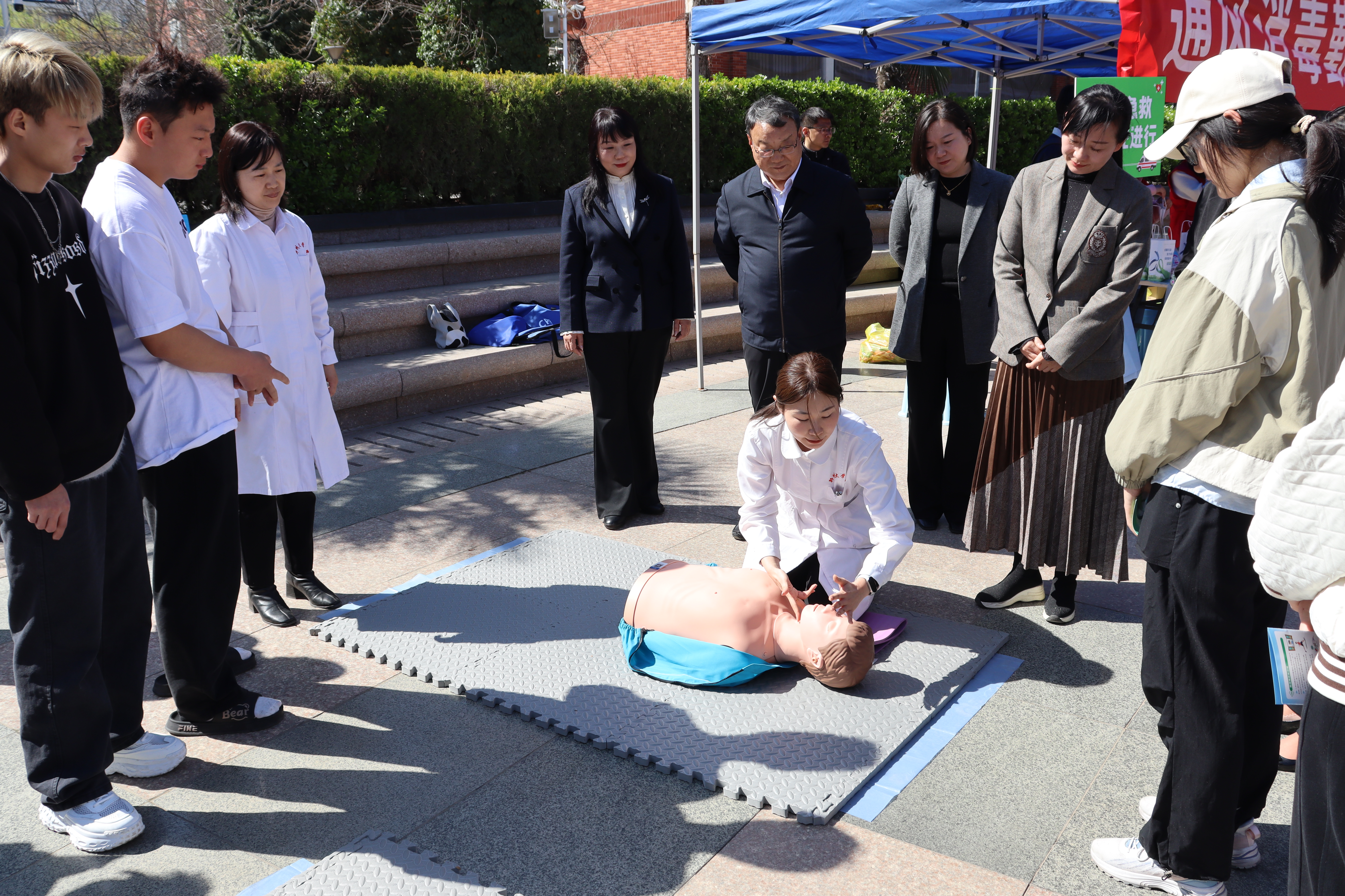 活动现场,开展了中医科、口腔科、眼科等义诊活动,趣味结核防治知识套圈、健康寄语墙、肺活量测试等科普互动游戏活动,以及心肺复苏、海姆立克急救等急救技能展示与操作活动,吸引了近800余名师生参加。