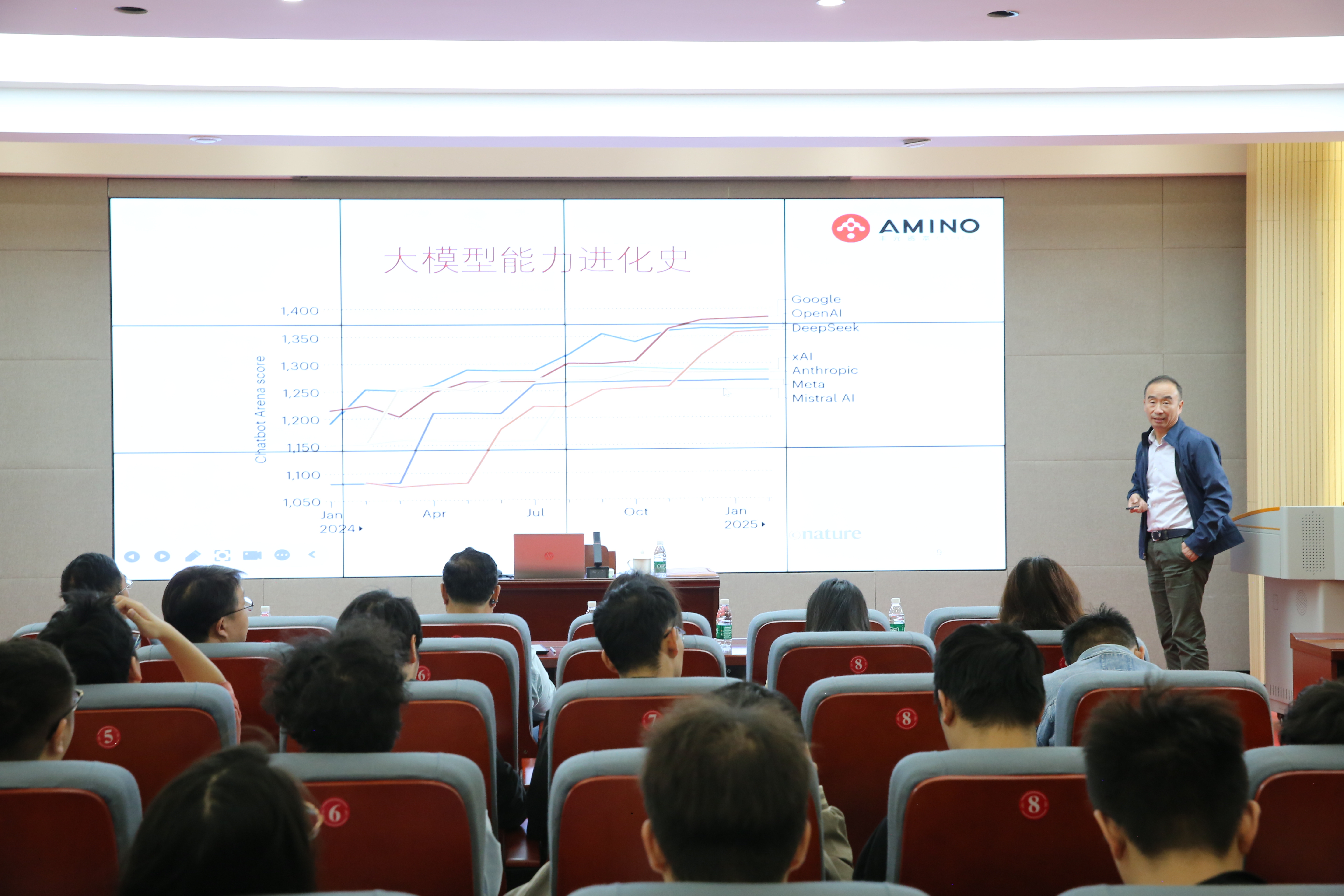 报告会上,朱会灿以“AI时代的创新创业”为题,结合自身在谷歌等国际顶尖科技企业的研发经验,系统梳理了人工智能技术的发展脉络、社会影响与未来趋势。他从人工智能的内涵与核心技术切入,回顾了谷歌人工智能从早期算法到深度学习革命的发展历程,并重点解析了生成式AI的内容创作能力及其对产业变革的深远影响。针对当前大模型研发的热潮,朱会灿对比分析了不同模型的智能水平与运营成本,他指出“效率优化”是技术落地的关键挑战。此外,他以Deepseek的技术优势为例,深入探讨了Deepseek如何通过深度理解GPU架构和采用混合专家模型提高效率、降低算力成本。在谈到AI时代的创新创业时,朱会灿从AI带来的创新机会、AI与时俱进的应用等方面进行了探讨,并与在场师生进行互动交流。