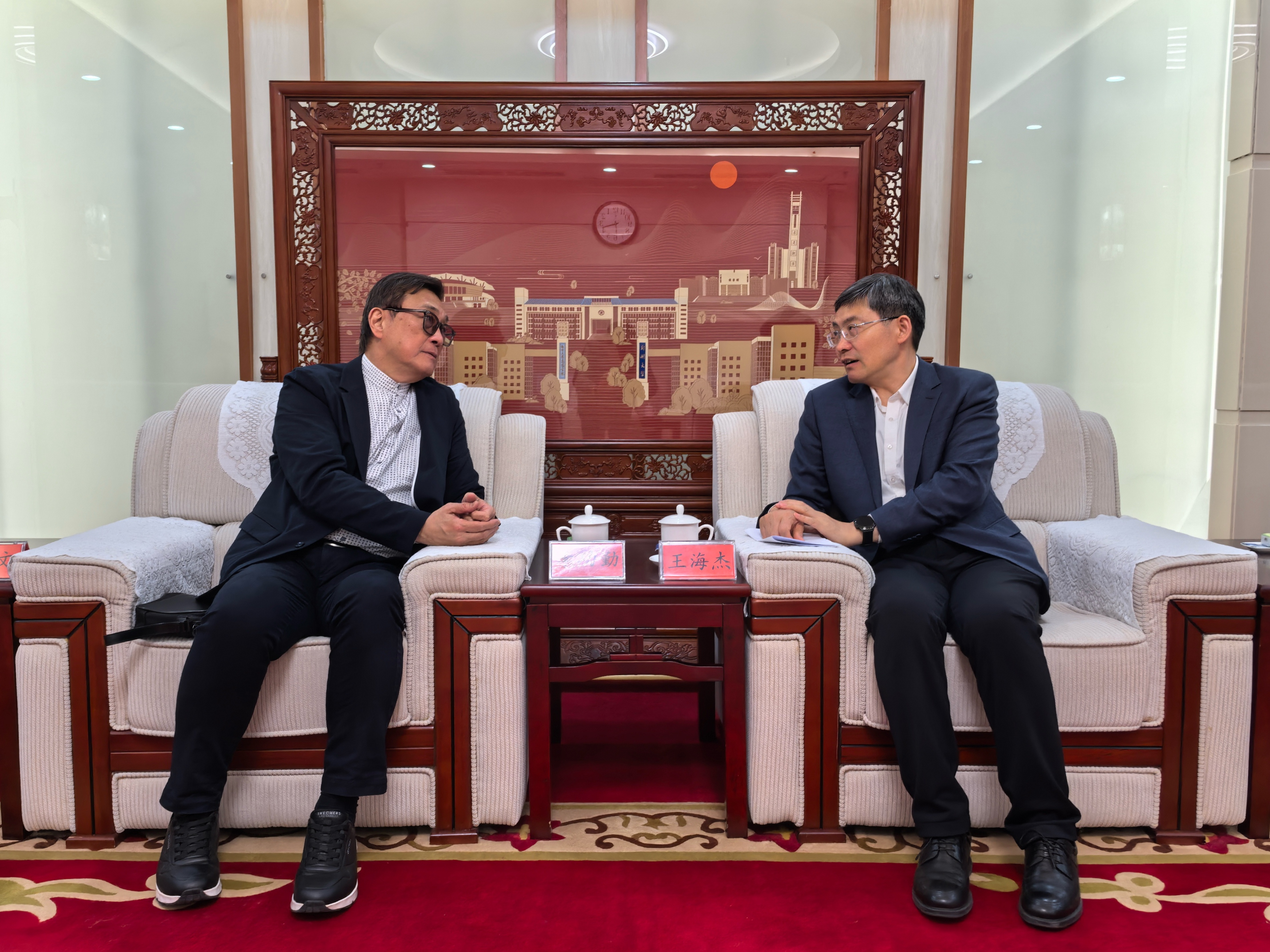 近日,台湾世新大学副校长李功勤一行来校访问并座谈交流。校党委常委、副校长王海杰在主校区会见来访客人,国际交流与合作处(港澳台事务办公室)主要负责同志陪同会见并参加座谈。