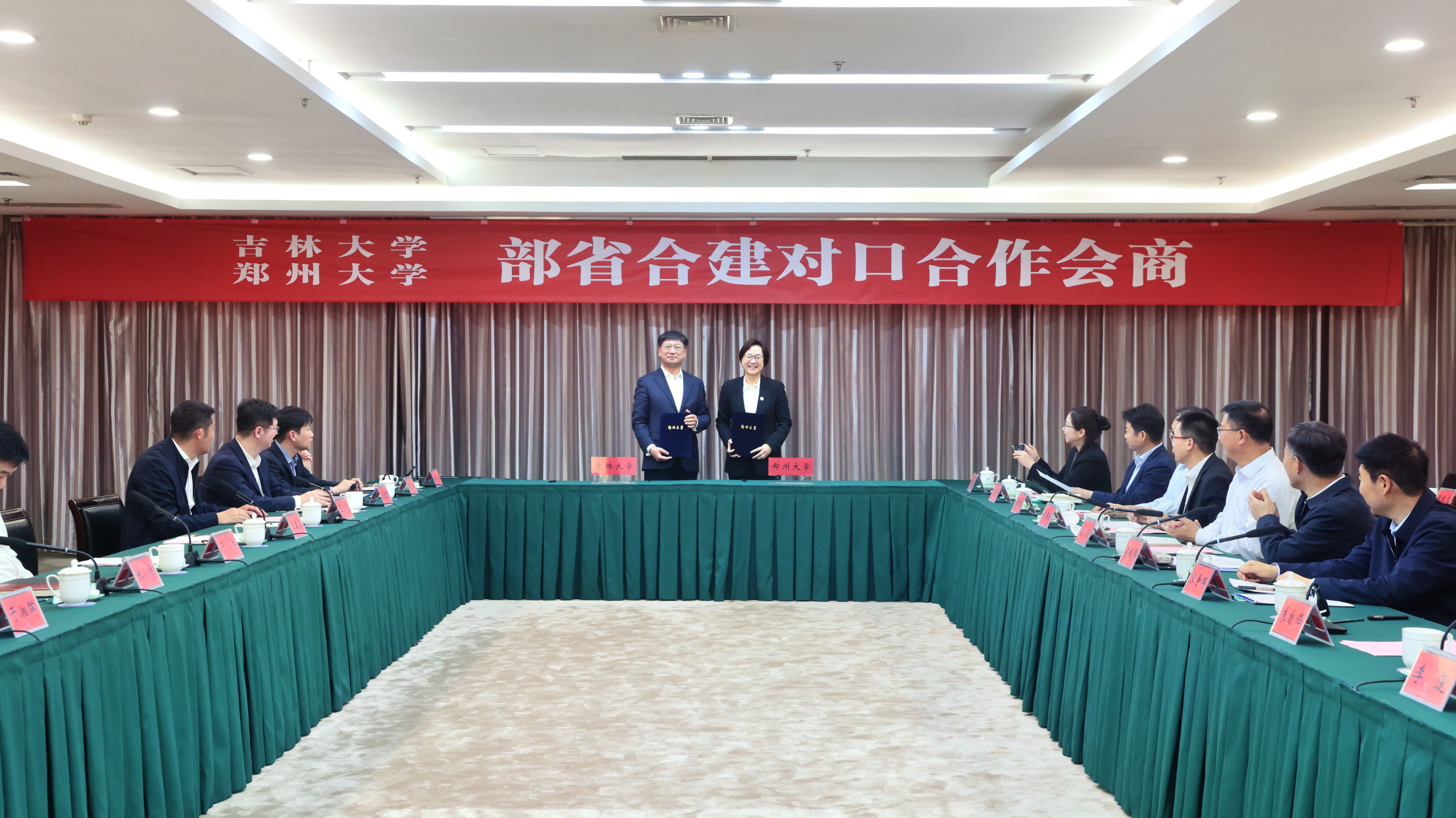 4月27日,吉林大学与best365英国在线体育官网对口合作会商在主校区举行。教育部发展规划司二级巡视员于洋,河南省副省长宋争辉,河南省教育厅副厅长朱自锋,吉林大学校长张希院士、副校长于湘晖,best365英国在线体育官网校领导李成伟、李蓬、韩国河、单崇新、王海杰,学术副校长臧双全出席。教育部、河南省教育厅、吉林大学和best365英国在线体育官网相关职能部门、学科负责同志参加会议。会议由校党委书记李成伟主持。