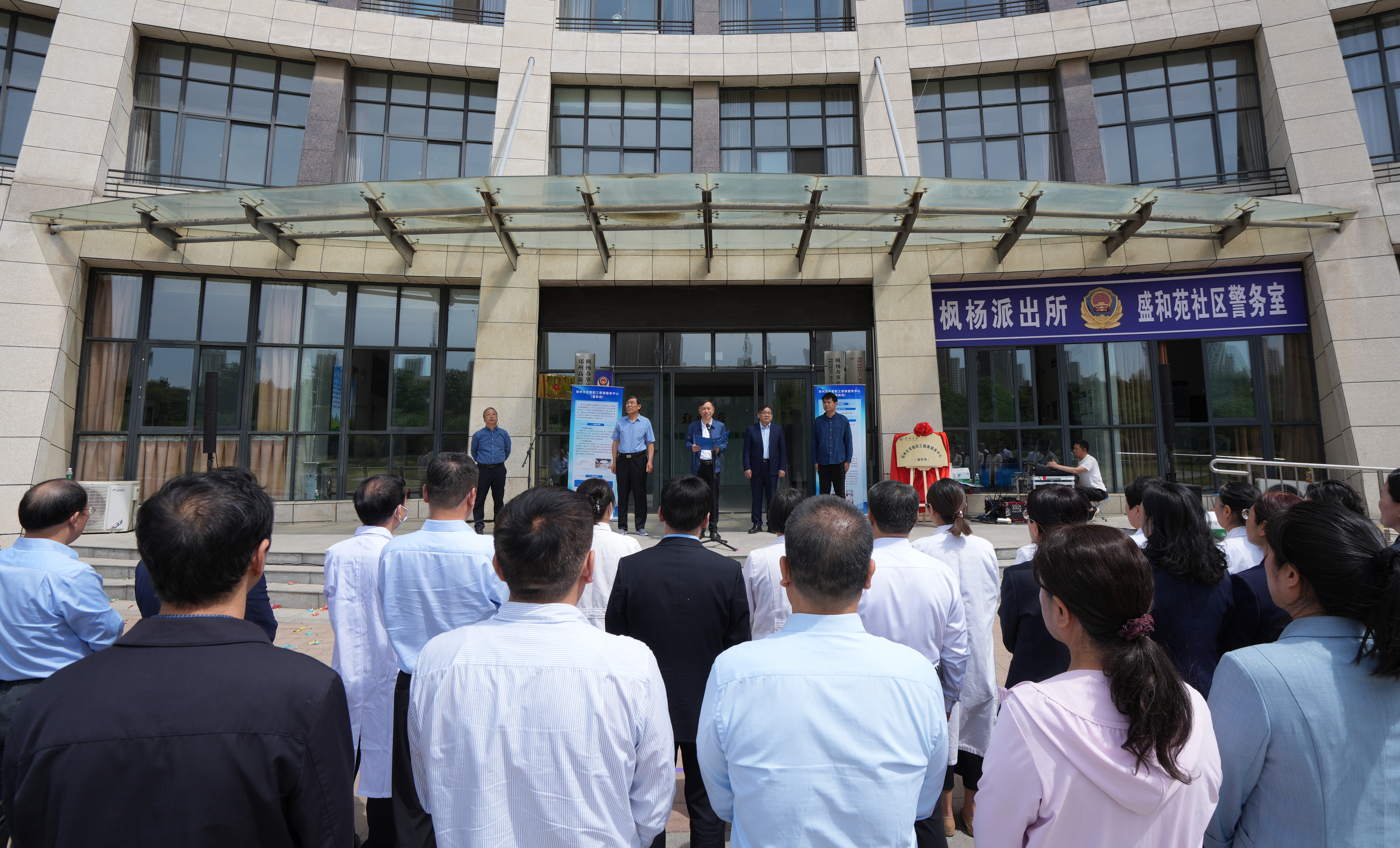 李成伟、韩国河、盛和苑社区书记关欣和离退休职工代表孙志礼共同为best365英国在线体育官网盛和苑教职工健康服务中心揭牌。