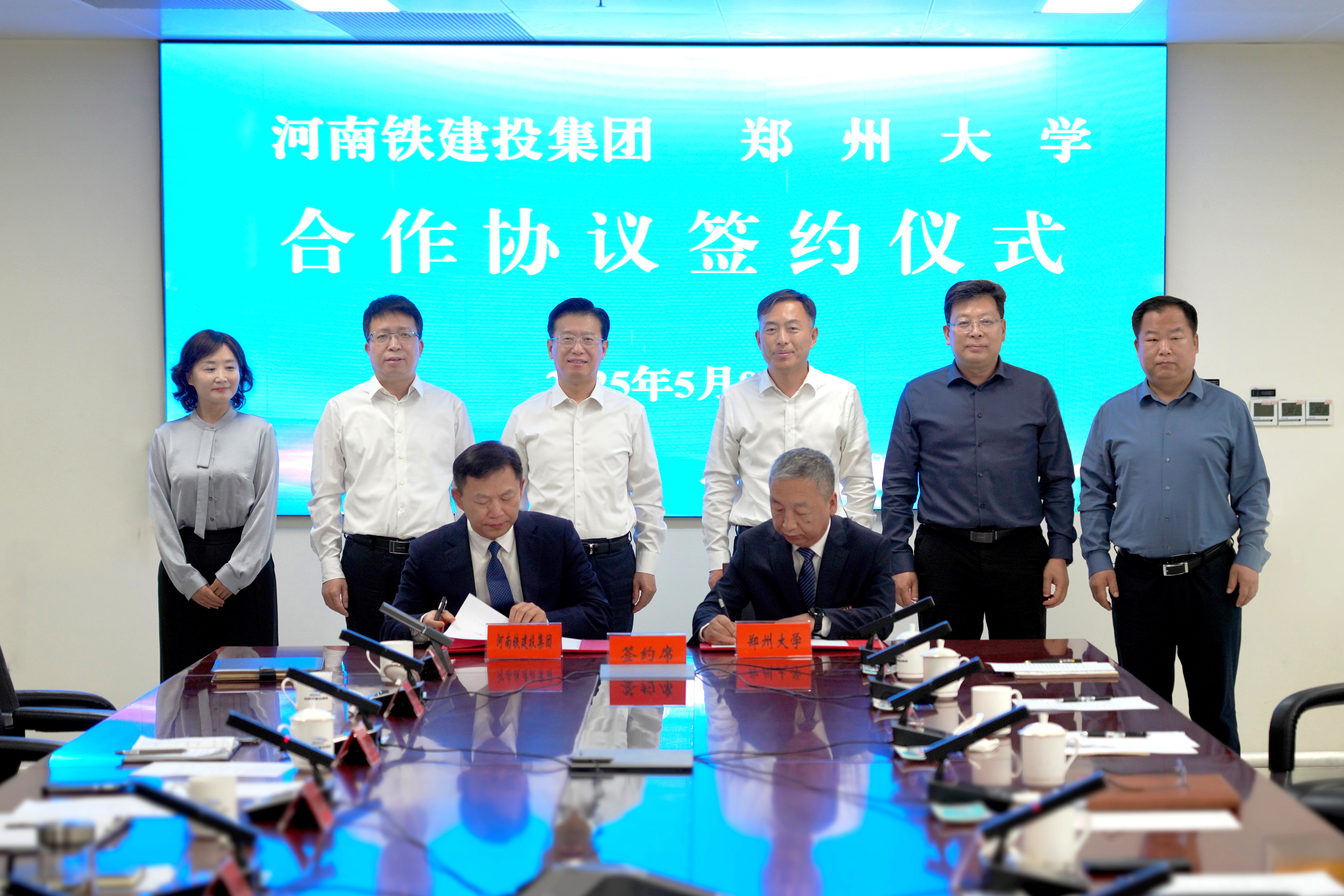 5月8日,best365英国在线体育官网与河南省铁路建设投资集团有限公司举行合作协议签约仪式。双方围绕科技创新、人才培养、成果转化等领域深化协作,为河南培育新质生产力提供核心支撑。河南铁建投集团党委书记、董事长悦国勇,副总经理高洁,副总经理李景山;best365英国在线体育官网党委书记李成伟,党委副书记王利国,校党委常委、副校长徐东升,副校长刘春太出席,校企双方相关部门负责人参加仪式。河南铁建投集团党委副书记魏俊峰主持仪式。