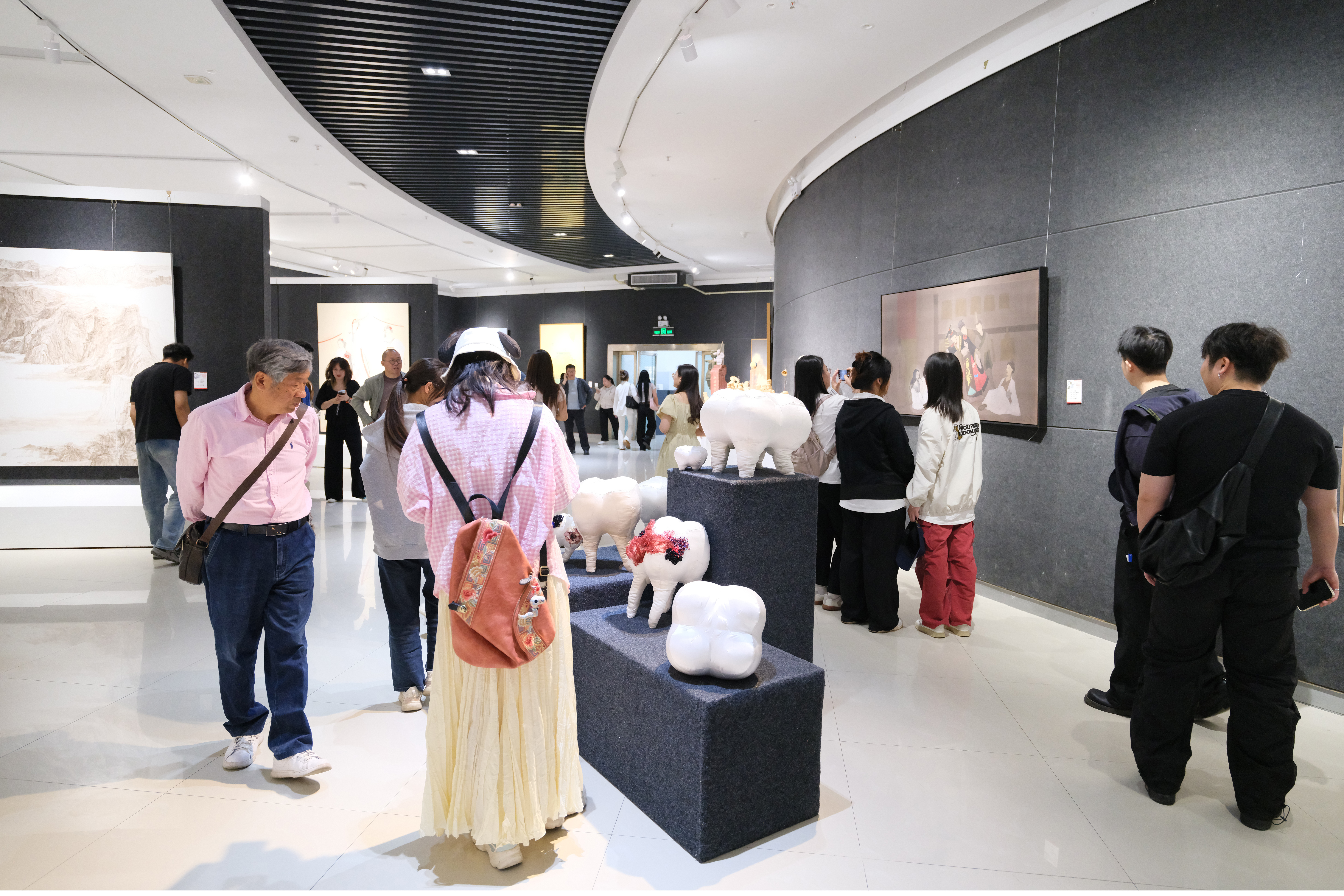本次展览共展出美术学院2025届165名本科生与55名研究生的毕业作品,展现了新一代艺术青年扎实的专业功底、求新求变的创新意识,以及开放包容的视野格局。展览分为两个时间段:5月9日至14日,展出中国画、油画、水彩及雕塑(本科)作品;5月16日至21日,展出雕塑(研究生)、视觉传达设计与动画以及部分绘画作品。