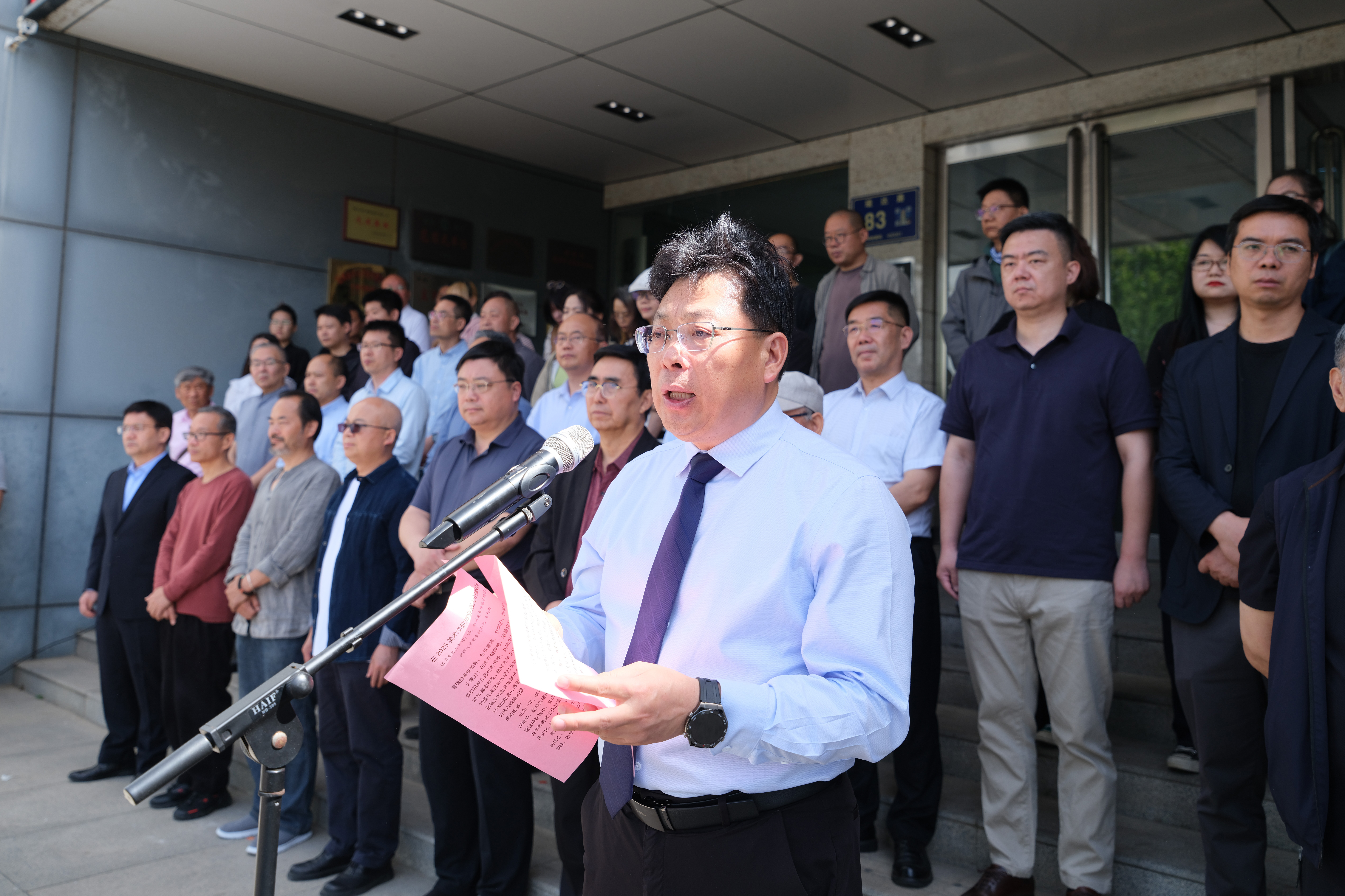 曹新林、石品等致辞,美术学院师生代表发言。马国强宣布作品展开幕。