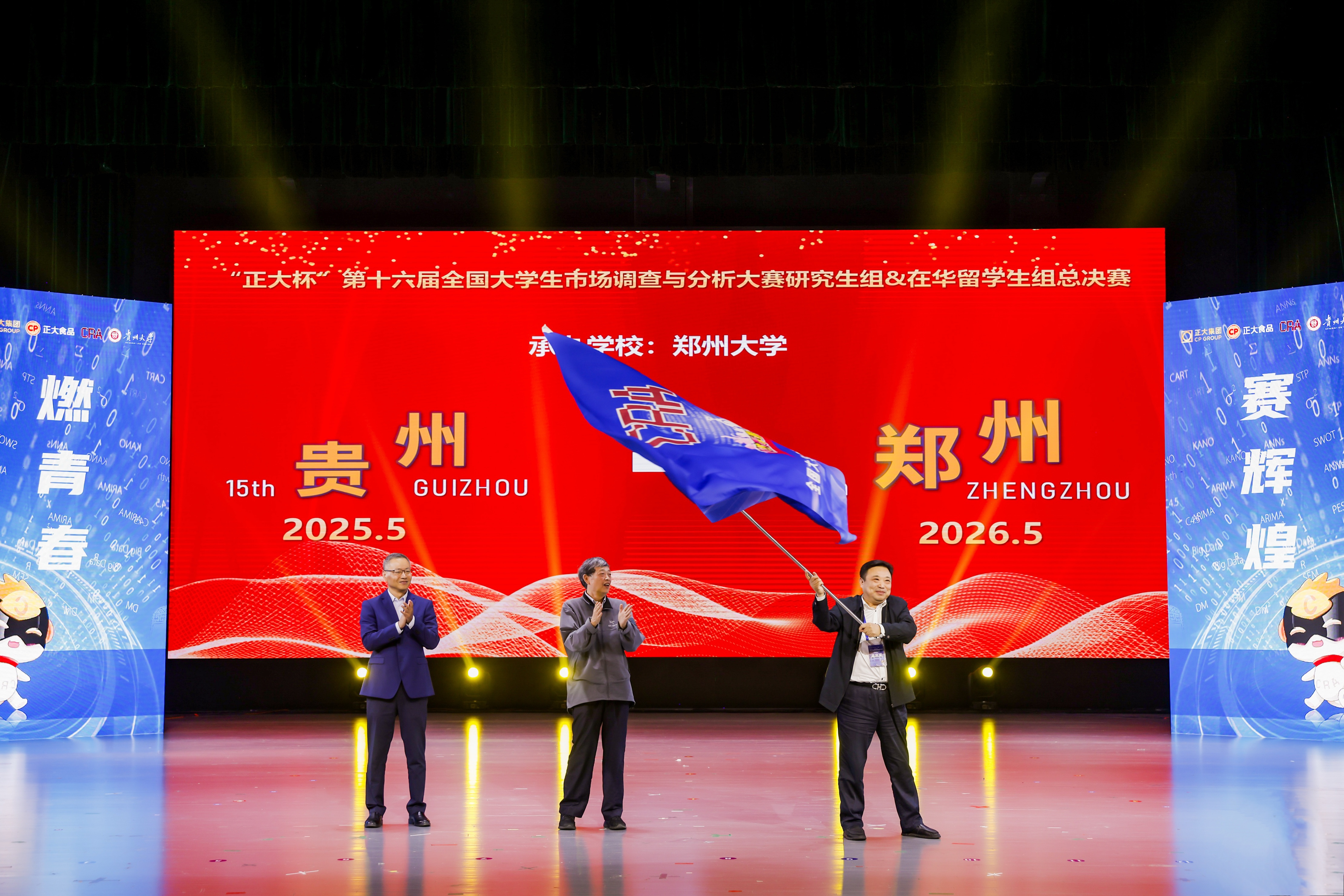 闭幕式上,胡少伟从中国商业统计学会会长、大赛组委会主任金勇进,贵州大学党委常委、副校长王锦荣手中接过大赛赛旗,标志着赛事正式进入新的周期。