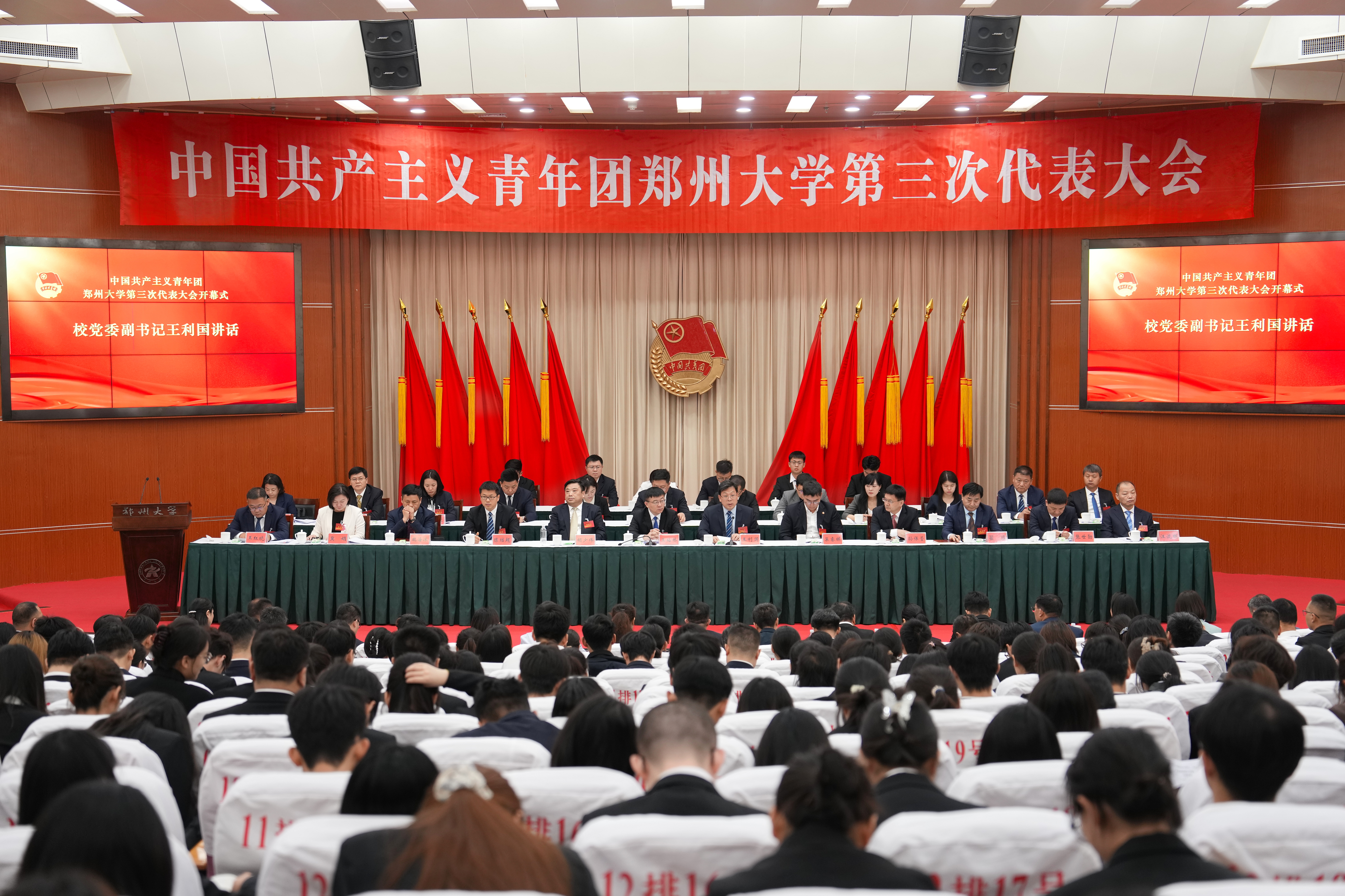 王利国代表校党委向大会的召开表示热烈祝贺,向各位来宾表示诚挚欢迎,向关心支持best365英国在线体育官网共青团工作的团省委和兄弟高校表示衷心感谢,向参加大会的全体代表和全校团员青年致以亲切问候。他表示,自上次团代会以来,学校各级团组织坚持以习近平新时代中国特色社会主义思想为指导,取得了许多优异成绩,涌现了一批先进榜样,谱写了忠诚担当、砥砺奋进、青春逐梦的乐彩华章。他强调,校党委高度重视共青团工作,全校各级党组织要充分认识做好新形势下共青团工作的重大意义,支持共青团按照群团工作特点和规律创造性开展工作。他对学校共青团工作和团员青年提出三点希望:一是全校各级团组织要牢记政治使命,始终走在前列引领带动;二是广大团干部要勇于履职尽责,始终担当作为积极奉献;三是团员青年要坚定理想信念,始终追求进步朝气蓬勃。他强调,伟大时代呼唤青年担当,辉煌事业期待青年力量,全校广大团员青年要牢记领袖嘱托、勇担时代使命,在党旗所指、团旗所向下,凝聚青春力量、奏响奋进强音,以实际行动践行“请党放心、强国有我”的青春誓言,为加快中国特色世界一流大学建设而不懈奋斗,为谱写中原大地推进中国式现代化新篇章,交出合格的郑大答卷和青春答卷。