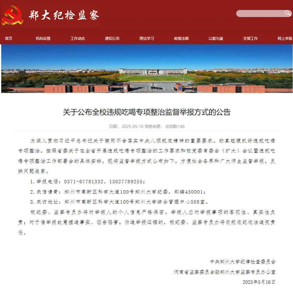 best365英国在线体育官网公布全校违规吃喝专项整治监督举报方式