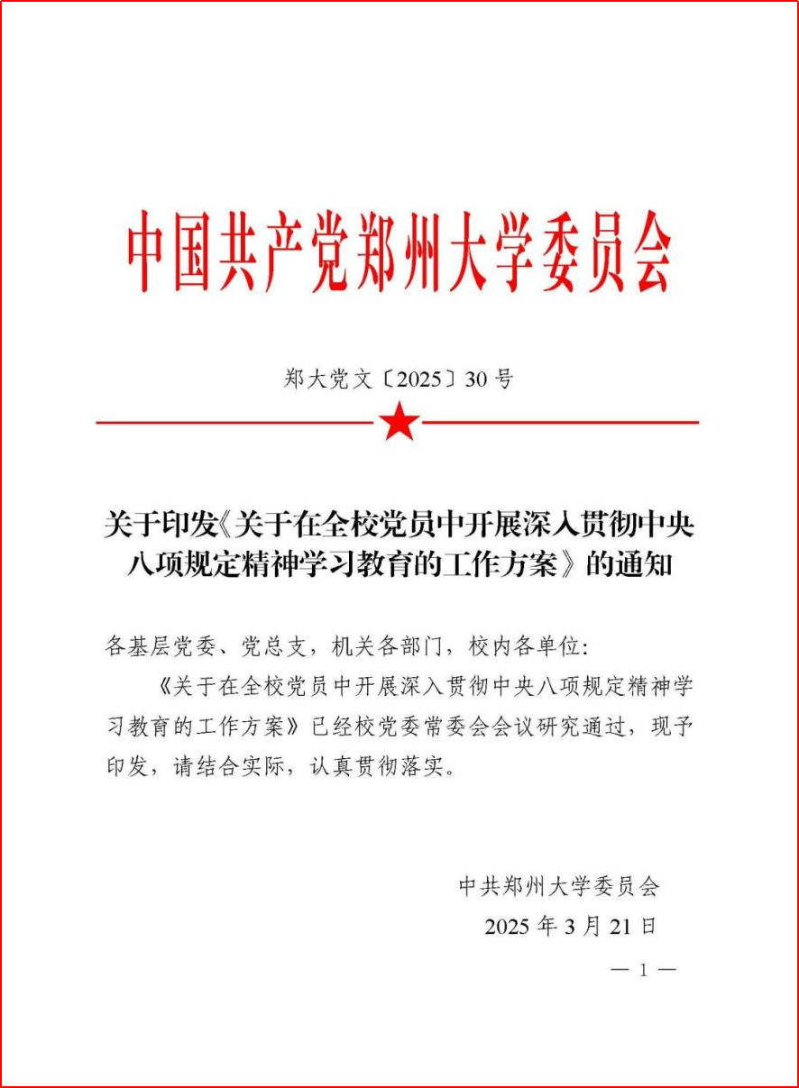对标对表抓查摆。组织纪委、巡察、审计、财务、信访等部门系统梳理落实中央八项规定精神方面的突出问题。开展《中国共产党纪律处分条例》贯彻落实情况“回头看”,围绕2个方面21条问题开展自查。校领导班子及成员聚焦2个问题清单深查细照、自我检视,形成校领导班子问题清单10项17条,各二级单位形成领导班子问题清单495项566条,建立整治台账,细化整改举措,扎实推进整改。把警示教育作为学习教育的重要内容,梳理由风及腐、风腐一体典型案例7个,违反中央八项规定精神典型案例12个,发放《警示教育读本》,在网站、公众号公布典型案例138个。分层分类召开警示教育会,集中观看廉政警示教育片,深化以案促改促治,进一步筑牢党员干部的思想防线。开展“廉洁教育月”,举办2025届毕业生党员廉洁教育专题党课,举办“漫笔绘廉心——全国廉洁漫画精品展·郑大站”“诵读承廉韵清风沁人心——红色廉洁故事荟”等系列活动,以“寓廉于学、寓廉于教”理念,持续深化“清廉郑大”建设,厚植清廉基因,筑牢拒腐防变思想堤坝,营造风清气正校园生态。