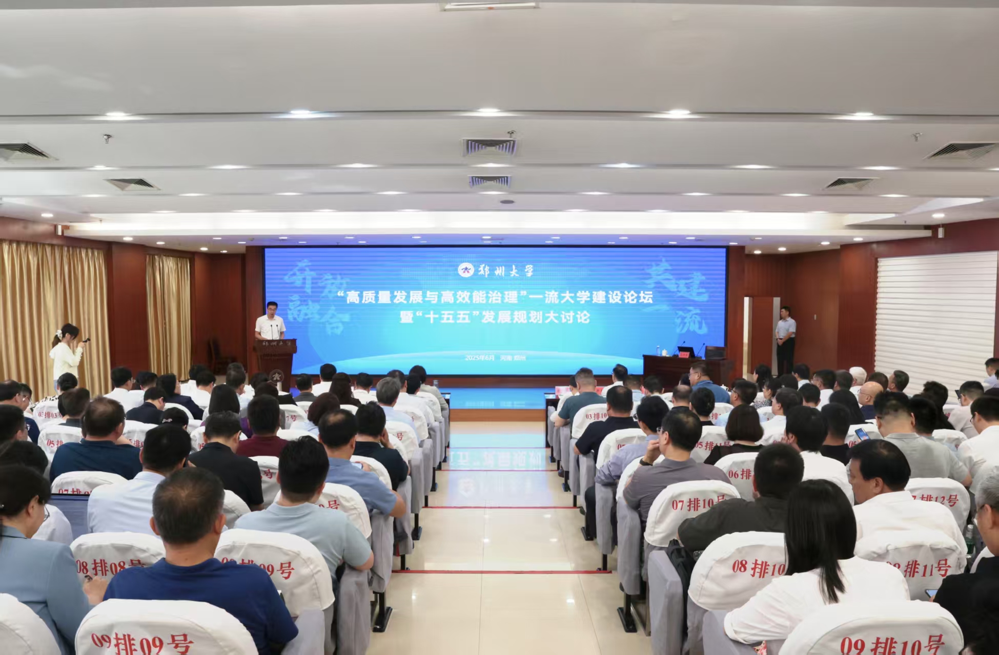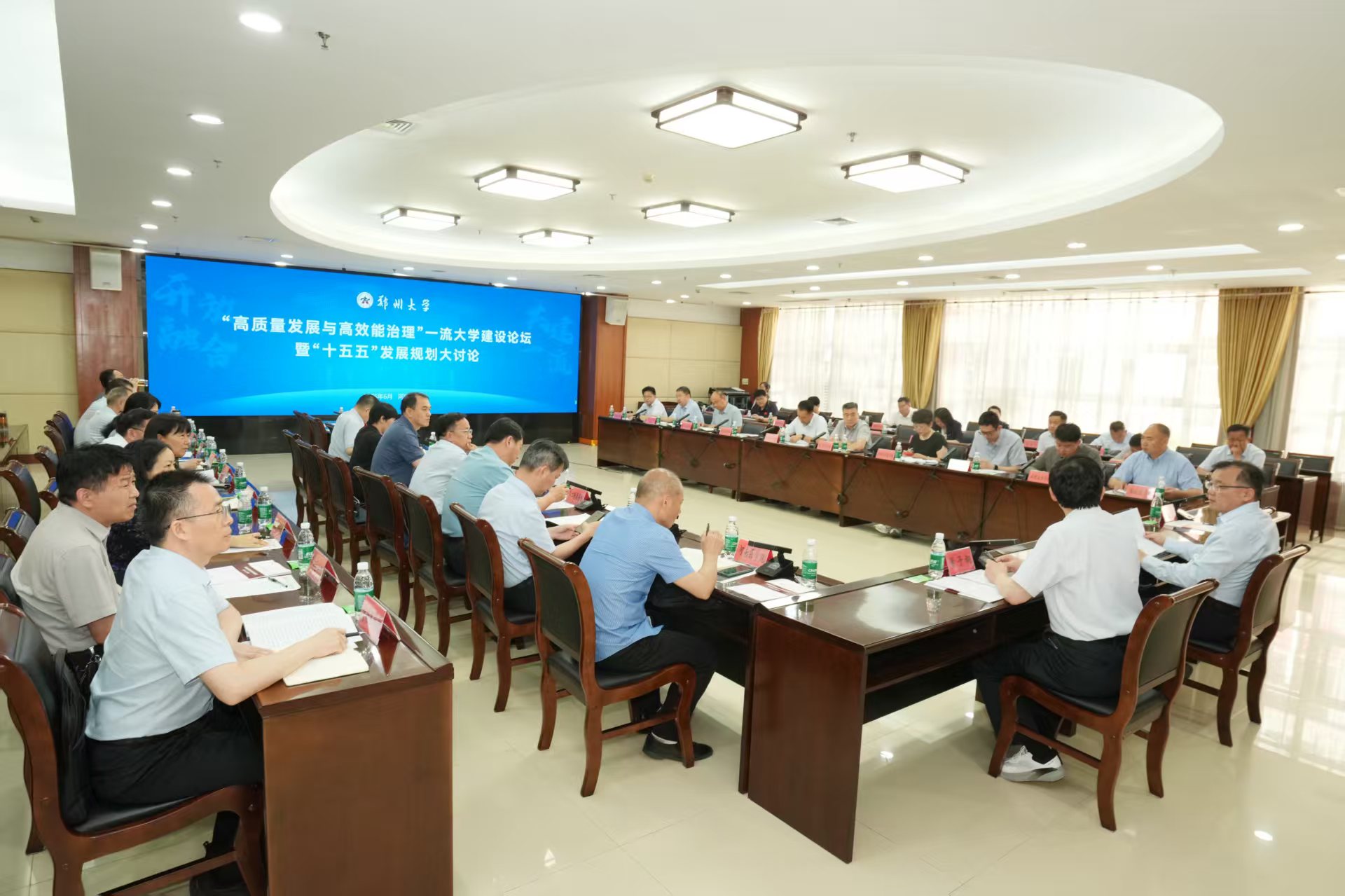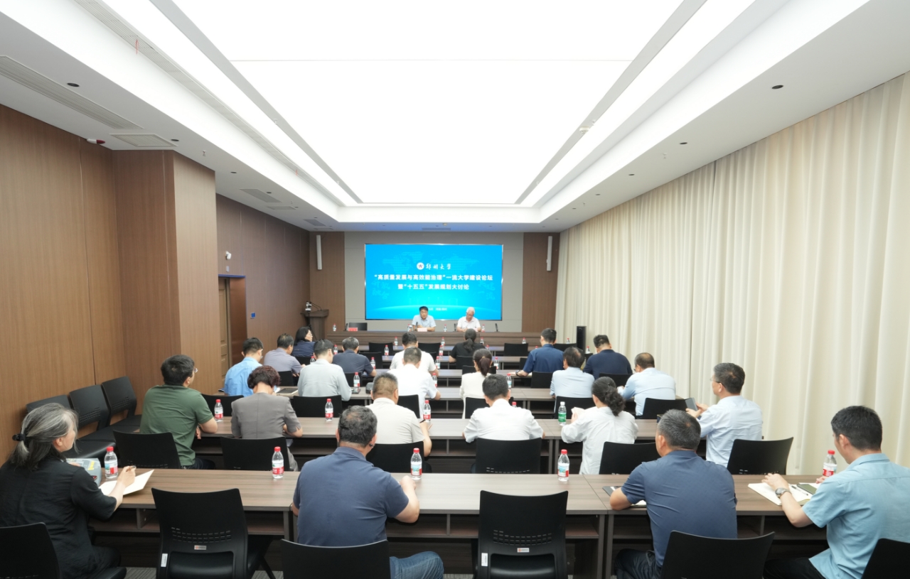 在学校“十四五”规划、“双一流”第二个建设周期冲刺收官与“十五五”规划、新一轮“双一流”建设谋篇布局的关键交汇点,学校于6月12日至13日举行“高质量发展与高效能治理”一流大学建设论坛暨“十五五”发展规划大讨论。本次会议旨在深入贯彻落实习近平总书记视察河南时提出的“两高四着力”重要指示精神,集众智、汇众力,科学擘画学校未来发展宏伟蓝图。校党委书记李成伟、校长李蓬以及全体在校校领导出席,机关部门、学院科研机构与直附属单位主要负责同志参加会议,河南农业大学、河南工业大学等兄弟高校代表受邀参会。会议分为主旨报告与分组讨论两个环节。