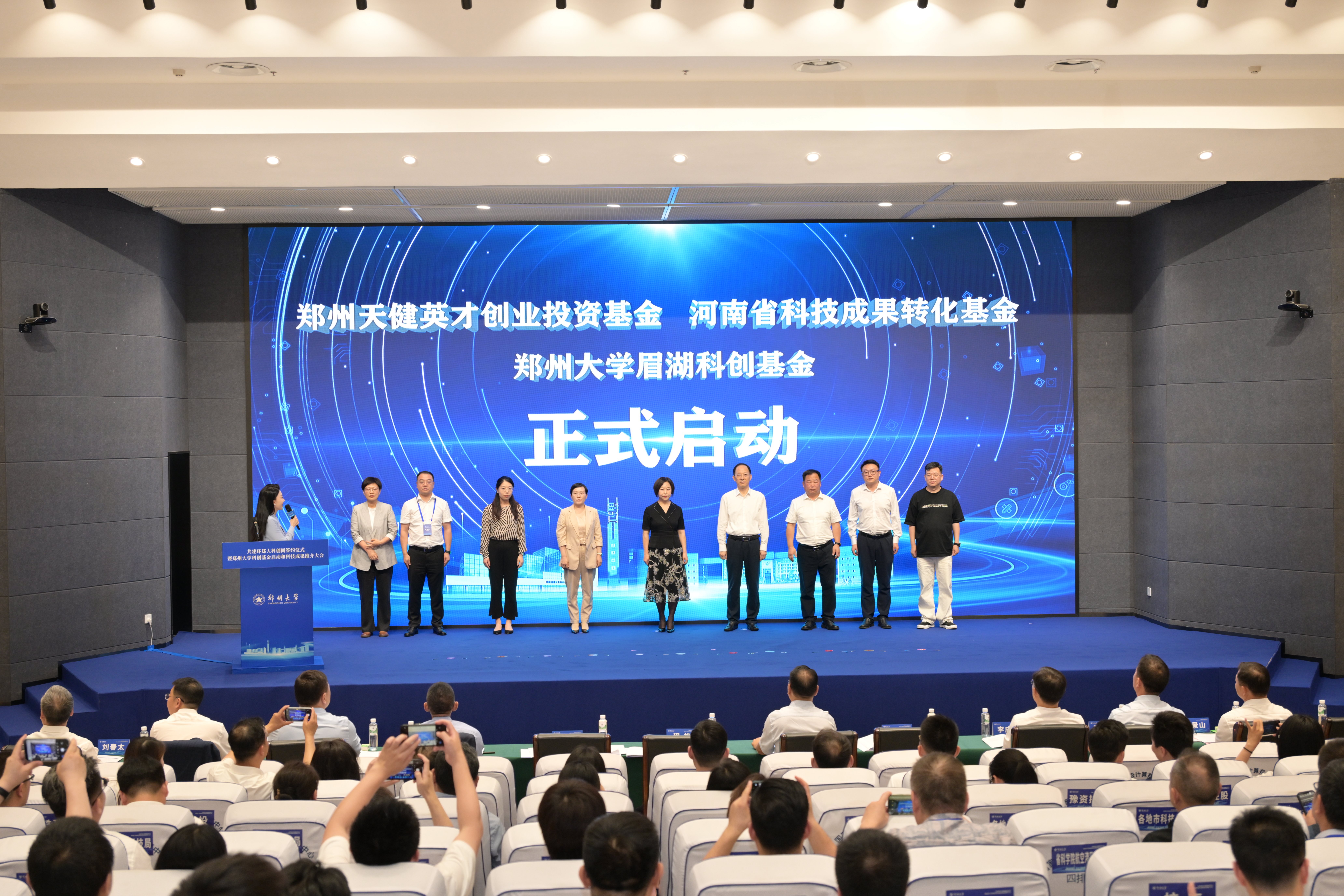河南省科技厅二级巡视员程艳,郑州市政府副市长、党组成员陈红民,郑州市政协副主席、科技局局长魏宁娣,best365英国在线体育官网党委常委、副校长徐东升,河南创新投资集团有限公司总经理陈兰,河南省铁路建设投资集团投资管理部总经理朱晨赫,豫资控股新材料集团副总经理李坚伟,郑州高新产业投资集团有限公司总经理陈金阁,江苏安立丰控股集团董事长张霆辉,共同启动郑州天健英才创业投资基金、河南省科技成果转化基金和best365英国在线体育官网眉湖科创基金,基金总规模5.5亿元。
