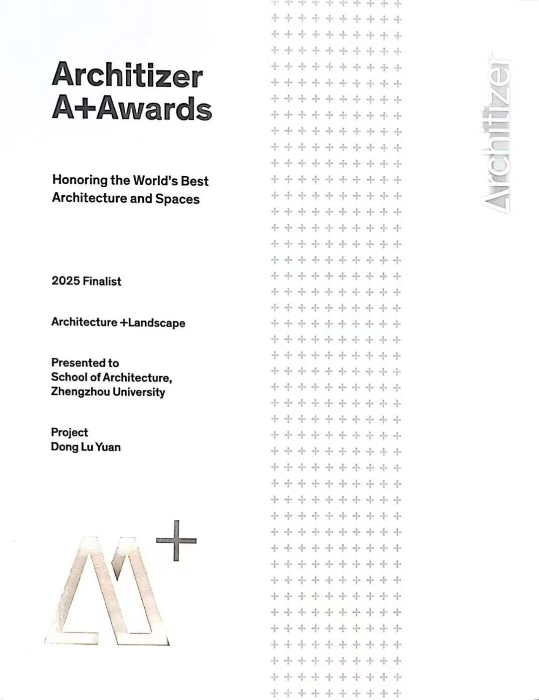 美国Architizer A+奖是由全球最大的建筑平台Architizer主办,是全球建筑与设计领域最具影响力和权威性的奖项之一;该奖项旨在表彰全球最优秀的建筑项目、设计师和产品,其评审团由国际顶尖建筑师、设计师及评论家组成。奖项评选极为严格,每个类别从全球数百个优秀项目中仅遴选出5强进入决赛,最终决出1名Winner和4名Finalist。往届知名获奖项目如荷兰MVRDV的“山谷”垂直社区、日本隈研吾的“竹谧”住宅、中国台湾库哈斯的“台北表演艺术中心”、挪威Snøhetta的“Under”水下餐厅、中国MAD建筑事务所的“哈尔滨大剧院”等,均在建筑界享有盛誉。