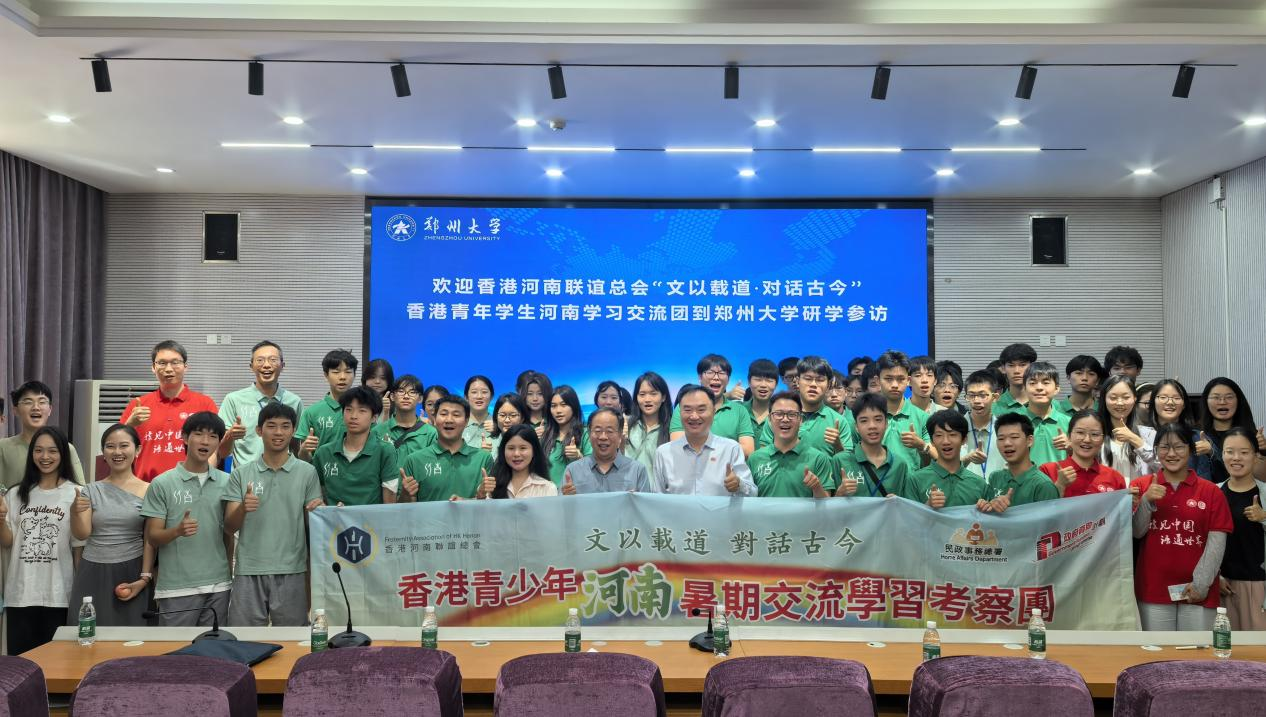 8月11日,香港河南联谊总会“文以载道·对话古今”香港青年学生河南学习交流团一行50余人在副会长高波带领下来校交流研学。省委统战部相关负责同志陪同到访,best365英国在线体育官网港澳台事务办公室及相关学院师生代表参加活动,共同开展了一场兼具文化深度与情感温度的交流活动。