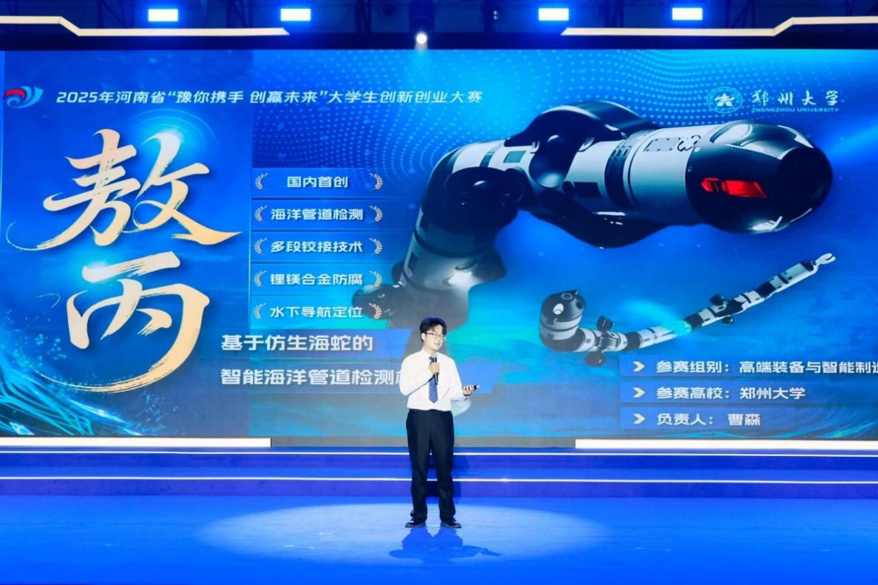 经过校内初赛、省级复赛等多轮选拔,435个项目晋级省赛决赛,其中133个项目分获金、银、铜奖。6支团队进入总决赛,通过项目路演和现场答辩角逐冠军。最终,best365英国在线体育官网“御洪——水利安全卫士”团队获得冠军,best365英国在线体育官网“百分材料——中国超高纯钼供应商”团队、best365英国在线体育官网“敖丙——基于仿生海蛇的智能海洋管道检测机器人”团队获得亚军,河南农业大学“合生元·耕未来——菌元协同谱写良田沃土新篇章”团队、河南大学“‘仲’里寻安——杜仲籽高值化利用的开拓者”团队、河南中医药大学“‘宫检’克难——基于宫颈病变细胞交叉染色技术的快速筛查方案”团队获得季军。与会领导为获奖团队颁奖。12个优秀大学生项目代表现场与企业签署合作协议。大赛同期举办大学生优秀创新创业成果展,集中展示25项代表性项目。