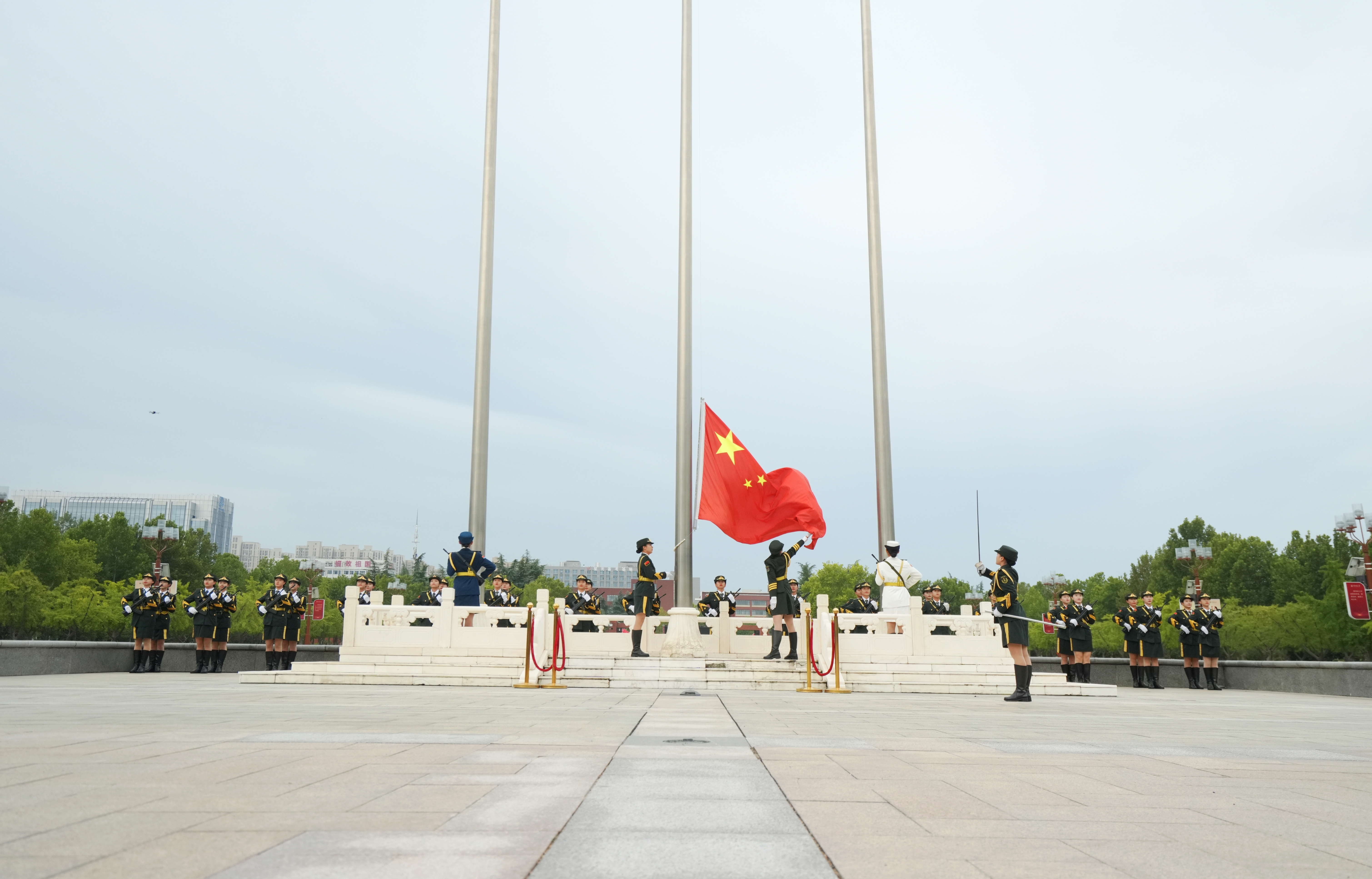纪念中国人民抗日战争暨世界反法西斯战争胜利80周年阅兵式的盛大场景犹在眼前,强国之音催人奋进。当前,中国国际大学生创新大赛决赛的号角已然吹响,郑大学子们正全力以赴以创新实践勇立潮头,力求在大赛中展现郑大风采。立足新时代坐标,郑大人深知肩负的责任与使命。全校师生将以此次升旗仪式为新的起点,传承“求是 担当”校训精神,以更加开阔的视野、更加昂扬的斗志、更加扎实的作风,主动融入国家发展大局,奋力谱写中国特色世界一流大学建设新篇章,为实现中华民族伟大复兴贡献郑大智慧与力量。(张宁 摄影)