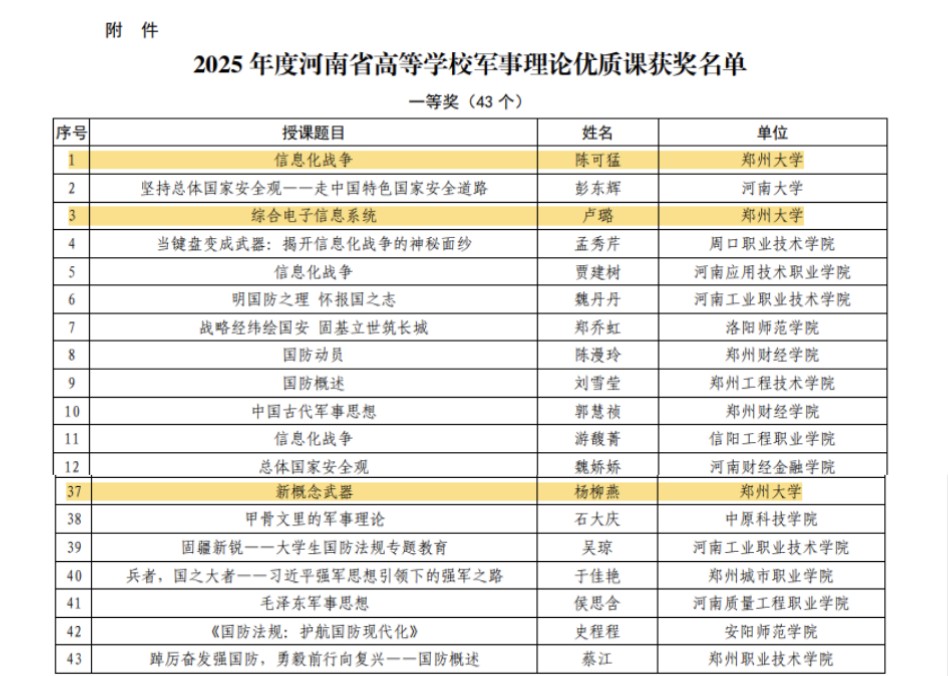 近日,河南省教育厅、河南省军区战备建设局联合公布2025年度河南省高等学校军事理论优质课获奖结果,best365英国在线体育官网在此次教学展示活动中表现突出,人民武装部军事理论教研室教师陈可猛、卢璐、杨柳燕荣获一等奖。