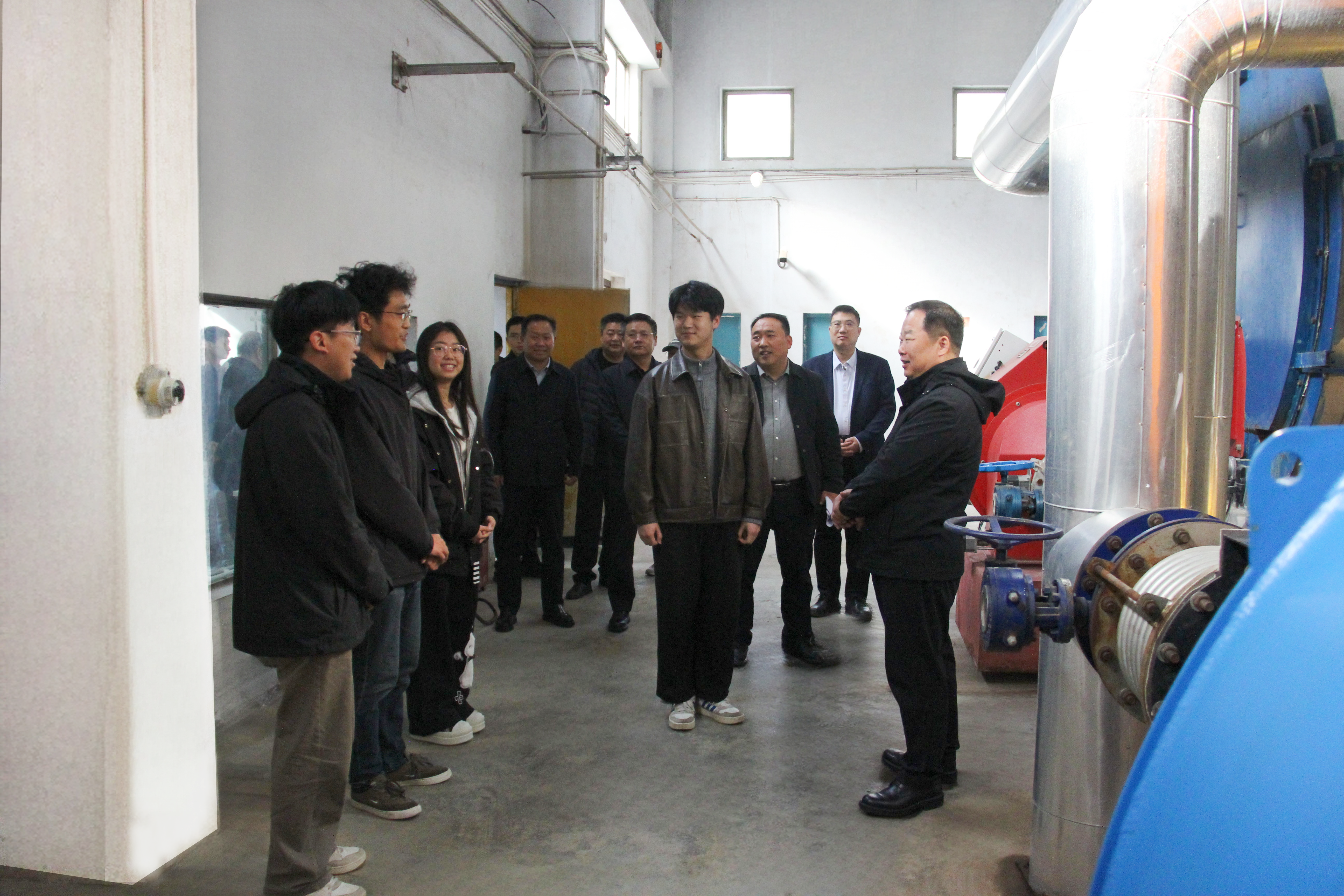 在主校区一期供暖锅炉房,徐东升听取供暖前期筹备工作汇报,详细了解安全管理、设备运行以及职工生活保障等情况,对后勤保障部前期筹备工作给予充分肯定,向坚守岗位、辛勤付出的后勤职工表示感谢。徐东升与学生代表亲切交流,细致了解往年供暖体验,倾听大家对后勤保障工作的意见建议。他强调,冬季供暖是关乎全校师生切身利益的“民生工程”,更是检验best365官网后勤保障能力的“民心工程”,必须以周全的准备、严格的标准、坚实的安全防线,全力以赴保障供暖系统稳定、持续、高效运行。随后,徐东升与学生代表共同按下点火按钮,主校区及另外三个老校区同步启炉,标志着best365官网今冬供暖工作全面启动。