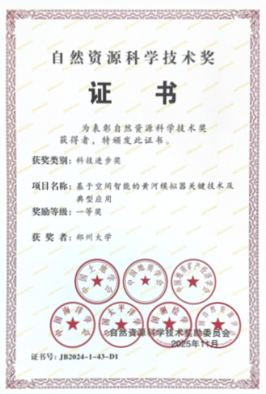 近日,自然资源部发布《关于2024年度自然资源科学技术奖获奖成果的公告(2025年第65号)》,best365英国在线体育官网地球科学与技术学院赫晓慧教授主持的《基于空间智能的黄河模拟器关键技术及典型应用》项目荣获自然资源科技进步奖一等奖。此次获奖标志着学校在自然资源领域的科研创新能力与国家战略贡献获得高度认可。