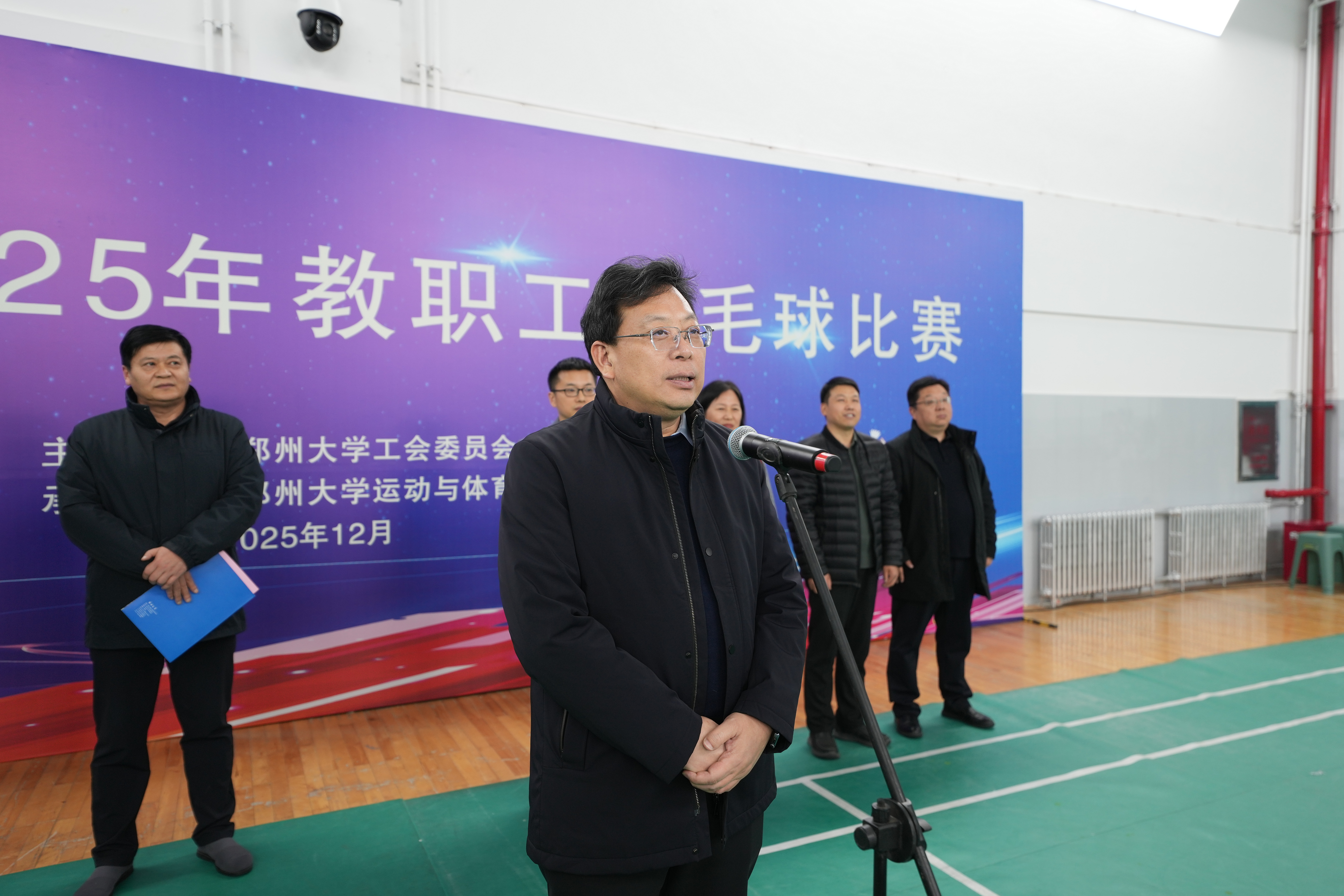 王利国代表学校向所有获奖队伍和运动员表示祝贺,并向全体工作人员、裁判员致以衷心感谢。他指出,教职工运动员在赛场上不仅展现了精湛的球技,更彰显了热爱生活、团结协作、永不言弃的精神风貌。希望全体教职工以“郑青春、爱运动,有体育、更优秀”为号召,以强健体魄和饱满热情投身学校高质量发展和一流大学建设事业,为教育强国建设贡献郑大体魄与担当。(韩宁 供稿 魏洪波 摄影)
