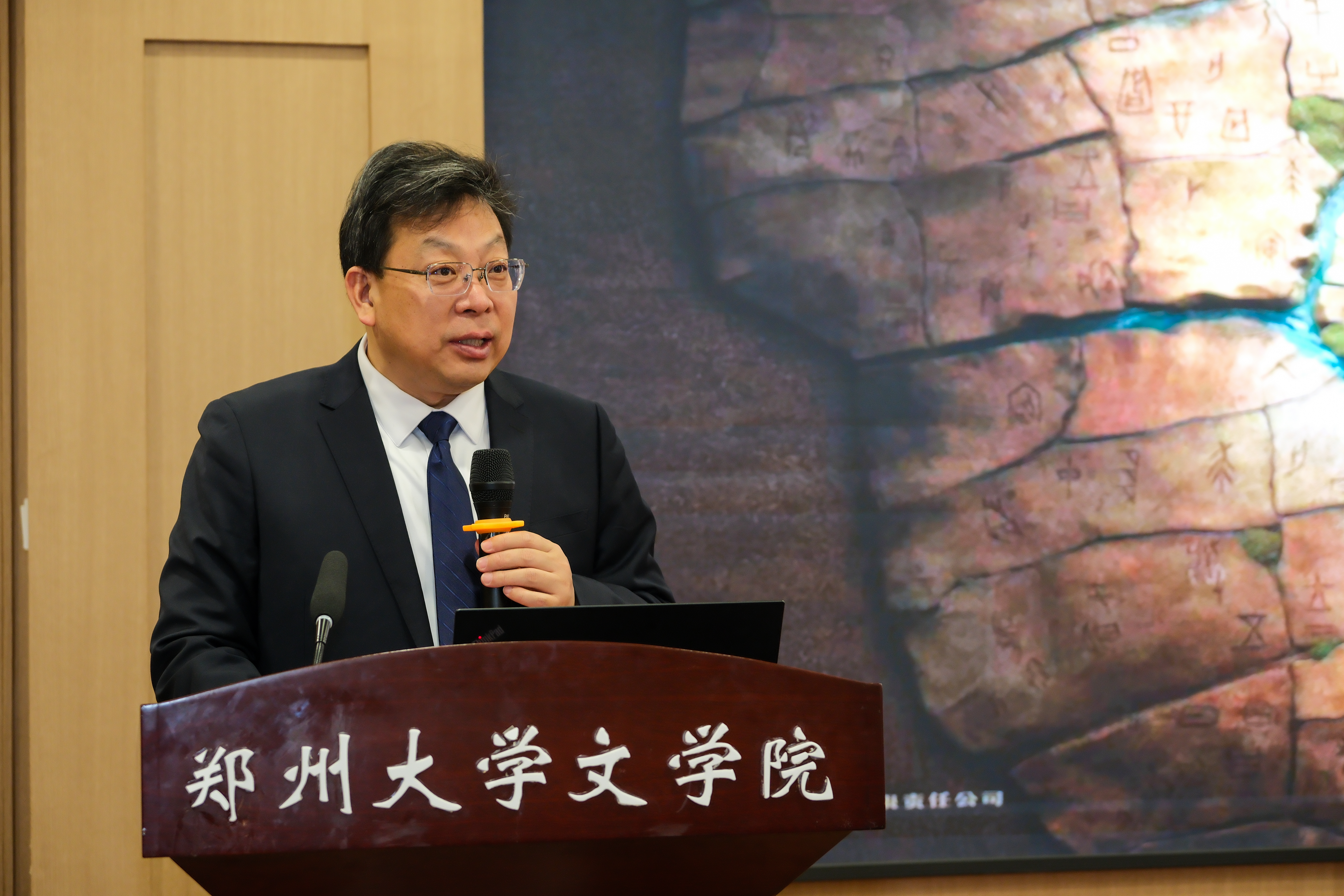张斌在致辞中回顾了纪录片《一片甲骨》的创作与传播成效。他表示,该片是河南广电传承传统文化的重要实践,通过全媒体传播策略,推动甲骨文从“冷门绝学”走向“时尚国潮”,目前全网播阅量已超21亿。他对best365英国在线体育官网汉字文明研究中心提供的学术支持表示感谢,认为该合作增强了影片的思想性与艺术性,并期待未来继续深化双方在文化创作与传播领域的协同合作。