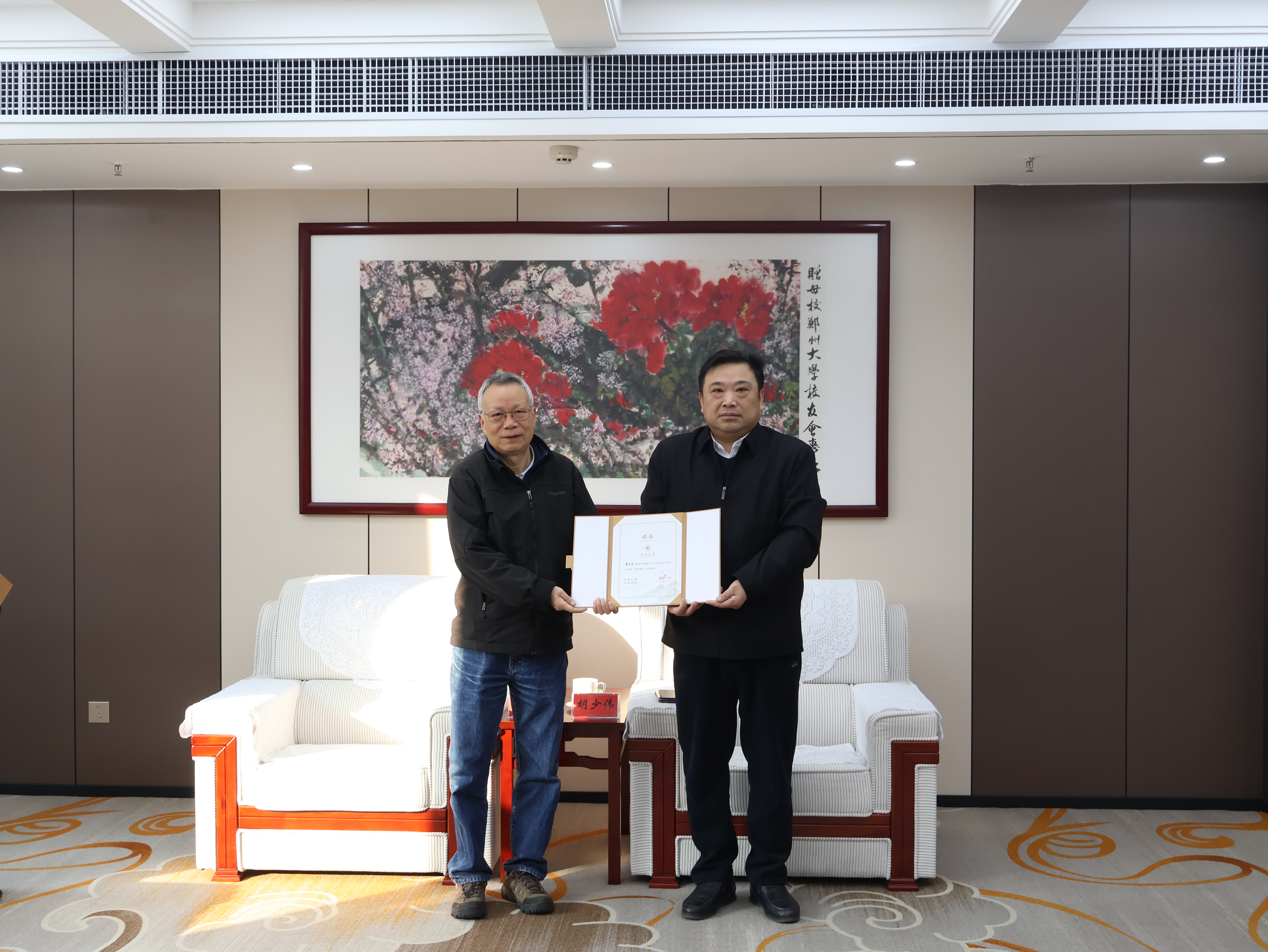 校党委常委、副校长胡少伟为美国加州大学Santa Cruz分校终身教授,美国数学会会士,国家级高层次人才董崇英颁发“外国专家大讲堂”主讲嘉宾证书。