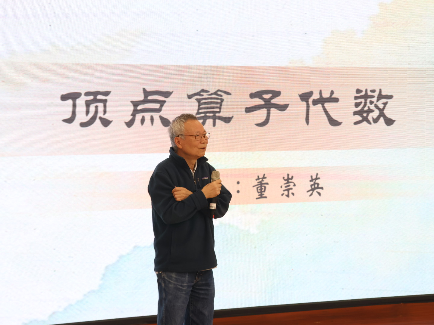 董崇英以《顶点算子代数》为题,从物理与数学的双重视角,系统阐述了该理论的起源与发展,回顾了“魔群”(Monster group)的发现历程,并围绕“月光猜想”(Moonshine)现象及其数学原理展开深入剖析。他进一步介绍了顶点算子代数的经典理论体系,包括模不变性理论与有理顶点算子代数的分类,帮助师生建立起对该领域的基础认知。此外,董崇英结合自身科研经历,分享了当前顶点算子代数理论中若干尚未解决的关键问题,并生动讲述了与数学大师Conway、Borcherds等学者的交往轶事,以幽默风趣的语言激发了在场师生的浓厚兴趣。