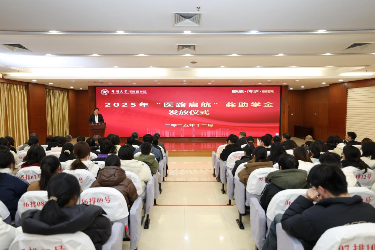 12月25日,best365英国在线体育官网“医路启航”奖助学金发放仪式在主校区举行。校党委副书记王利国,河南医学院校友会企业界分会名誉会长刘保松、常务副会长刘峰出席仪式。校友总会办公室、河南医学院及内设机构负责同志,校友代表、受助学生等130余人参加仪式。