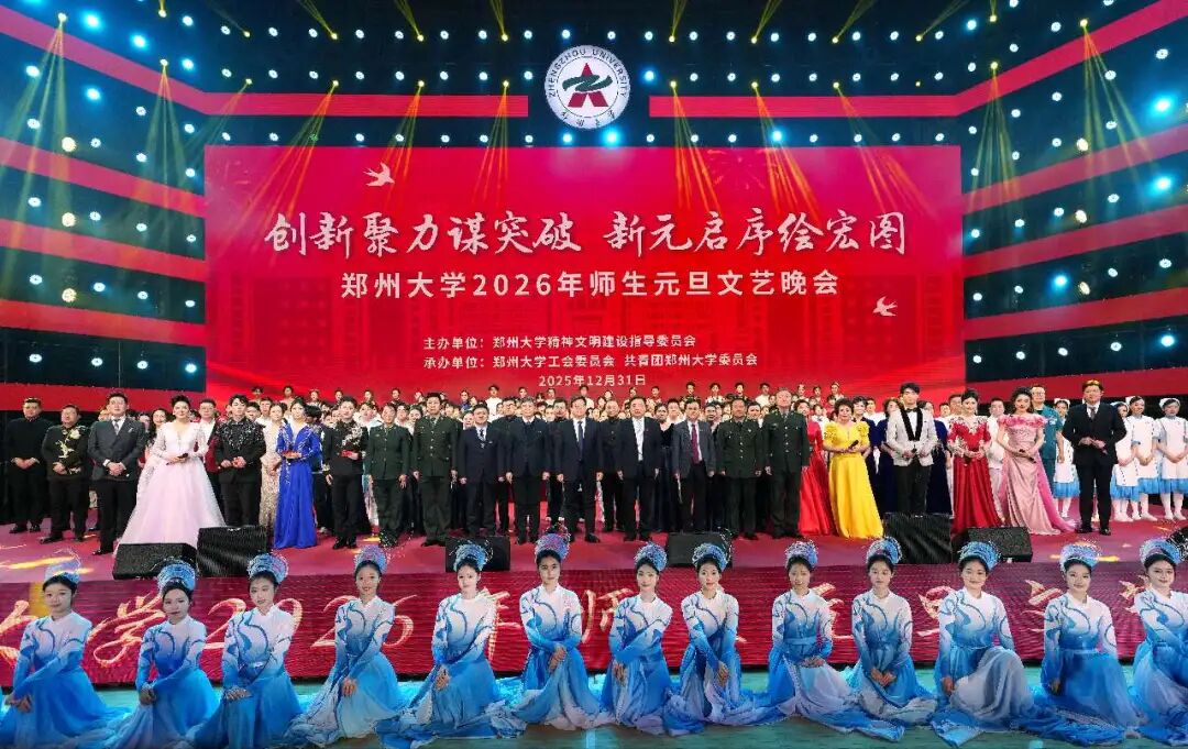 随后举办了师生元旦文艺晚会。晚会以“创新聚力谋突破,新元启序绘宏图”为主题,分为“赓续笃行守初心”“同心聚力共奋进”“挺膺担当绘新篇”三大篇章,通过歌舞、朗诵、戏曲、情景剧等丰富形式,彰显郑大师生朝气蓬勃的精神风貌。“2026,best365英国在线体育官网,我们一起向未来!”开场视频点燃每一份热切期待。拉丁舞《炫》跃动出蓬勃的青春火花,歌伴舞《中国鼓》尽显大气磅礴的时代韵律。舞蹈《东城巷里遇秋风》用律动演绎巷弄百态,而《光亮》则完美诠释中式美学。歌曲《CountingStars》迸发出撼人力量,《父亲的草原母亲的河》将听众带入广阔天地。歌曲串烧《挥着翅膀的女孩+稻香+美美Sunday》以欢快旋律唱出未来憧憬,《风吹麦浪+月亮照山川+是我,也是我们》借温情曲调守望平凡生活。情景剧《康复之光》昭示科技赋能医学的美好愿景,器乐表演《破阵乐》奏响中华五千年深厚底蕴。合唱《如愿》融入习近平总书记对青年的深切寄语,传递“我将爱你所爱的人间”的大爱之情。朗诵《祖国到底是什么》声声叩问直击心灵,戏曲《朝阳沟》双上山让老戏文焕发新光彩。当斑斓服饰随韵律流动,舞蹈《锦绣中华》以视觉之美抒写多元一体的民族诗篇。晚会在《黄河认得我》的磅礴乐声中落下帷幕,恒久回荡着全体师生奋进有为、逐梦不止的壮丽宣言。
