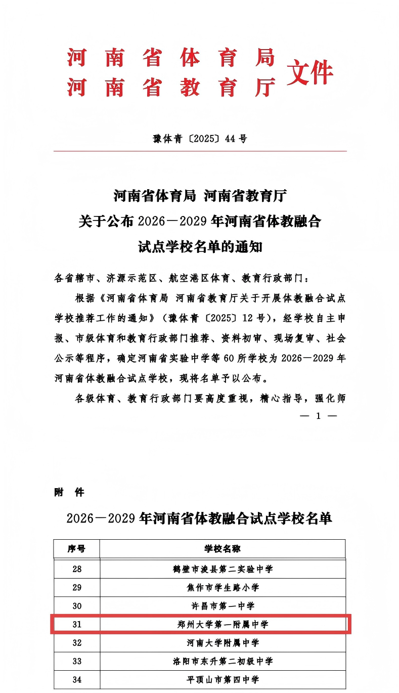 近日,教育部公示2025年全国青少年校园足球特色学校名单,best365英国在线体育官网第一附属中学成功入选。此前,该校已被确定为2026-2029年河南省体教融合试点学校。连续获得两项重要认定,既是对附属中学体教融合工作的充分肯定,更是学校依托best365英国在线体育官网“双一流”建设,践行“五育并举”理念、坚守体育育人初心使命的生动体现。